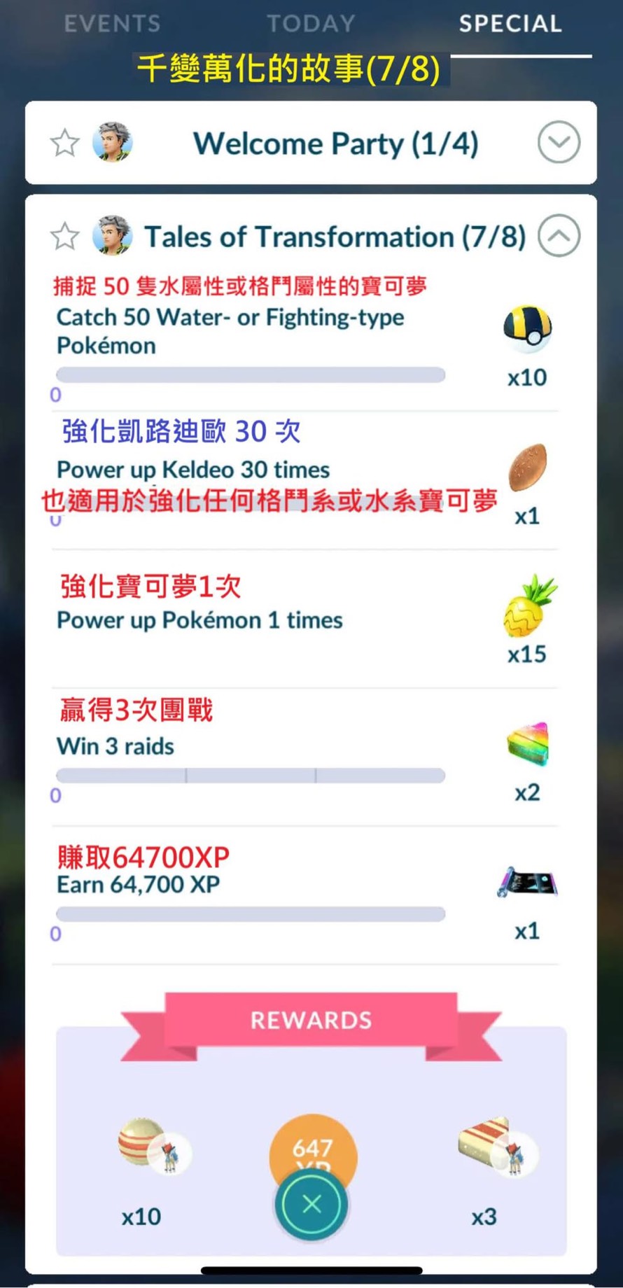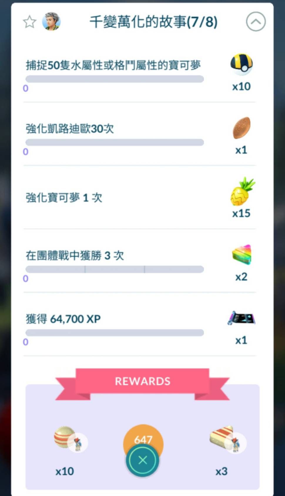 獎勵:凱路迪歐糖果x10、經驗640、凱路迪歐大糖x3