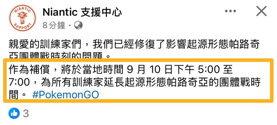 09/10 起源帕路奇亞晚餐約會BUG補償 Pokemon GO 2025