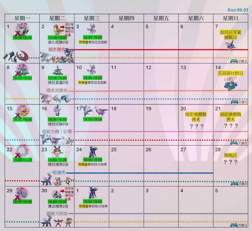 9/16 帕路奇亞,超暴鯉龍,超比雕下線(早上10點前)超拉帝兄妹,超沙奈朵,超艾路雷朵上場(早上11點後)