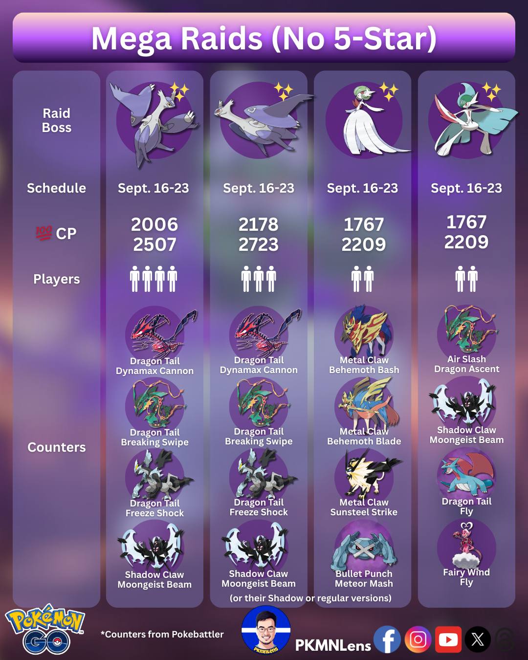 09/16 超級拉帝歐斯、超級拉帝亞斯、超級沙奈朵、超級艾路雷朵 團體戰資訊更新 Pokemon GO 2025