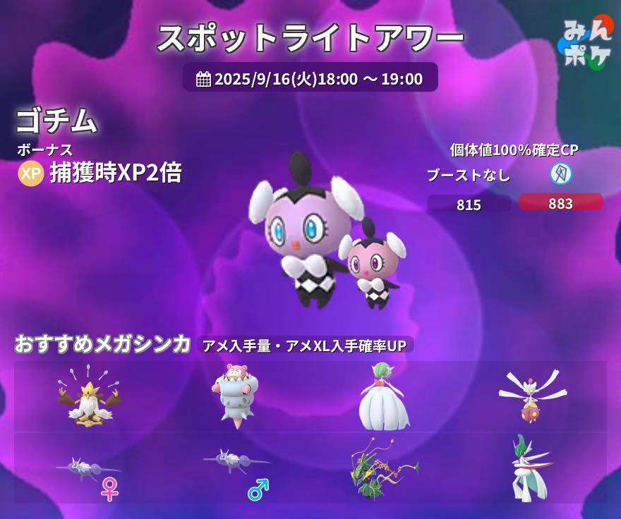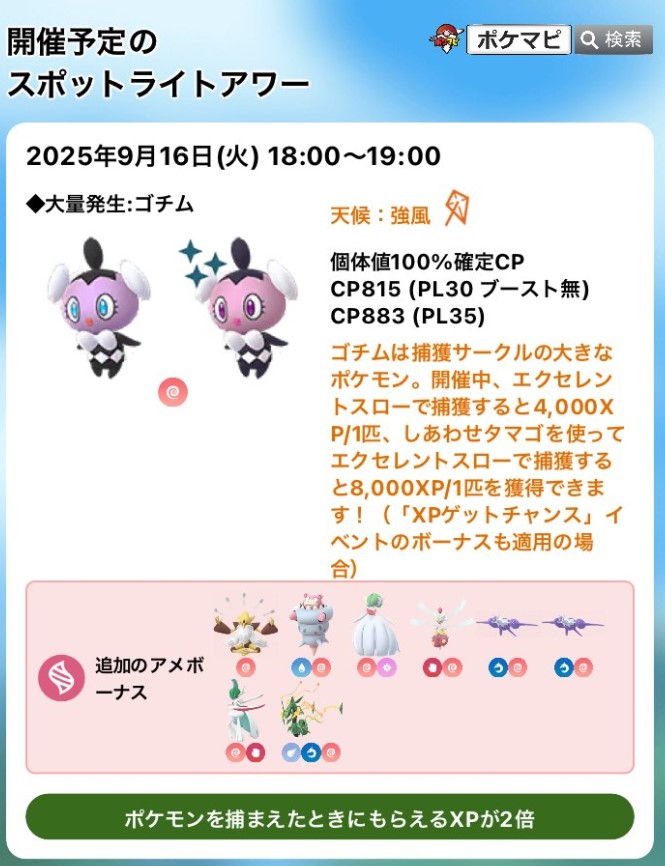 09/16 哥德寶寶 聚焦時刻 XP x2 獎勵 Pokemon GO 2025