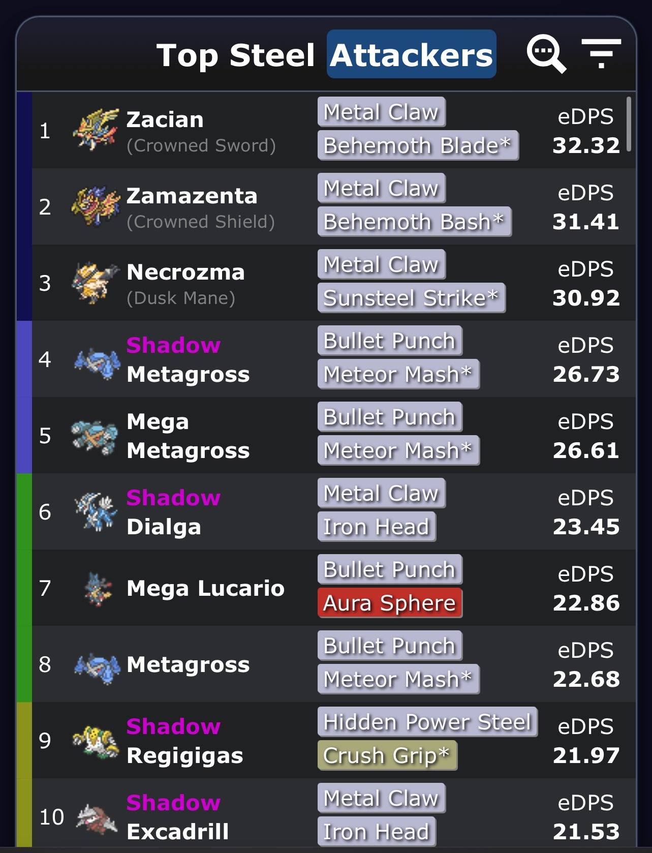 陰影巨金怪:對於陰影巨金怪而言,它已經擁有了高攻擊力,如果再搭配高能量產生招式,將能打出更具爆發性的傷害,可能會在特定盃賽中成為一個有趣的選擇。