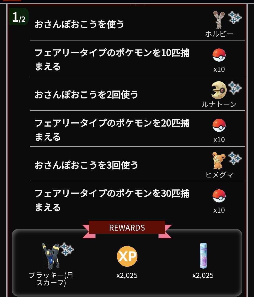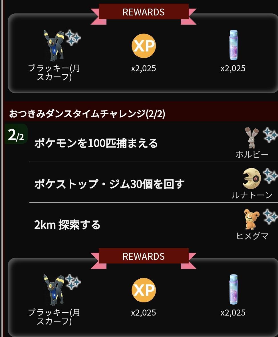 獎勵:戴著月亮圍巾的月亮伊布、經驗2,025、星塵2,025