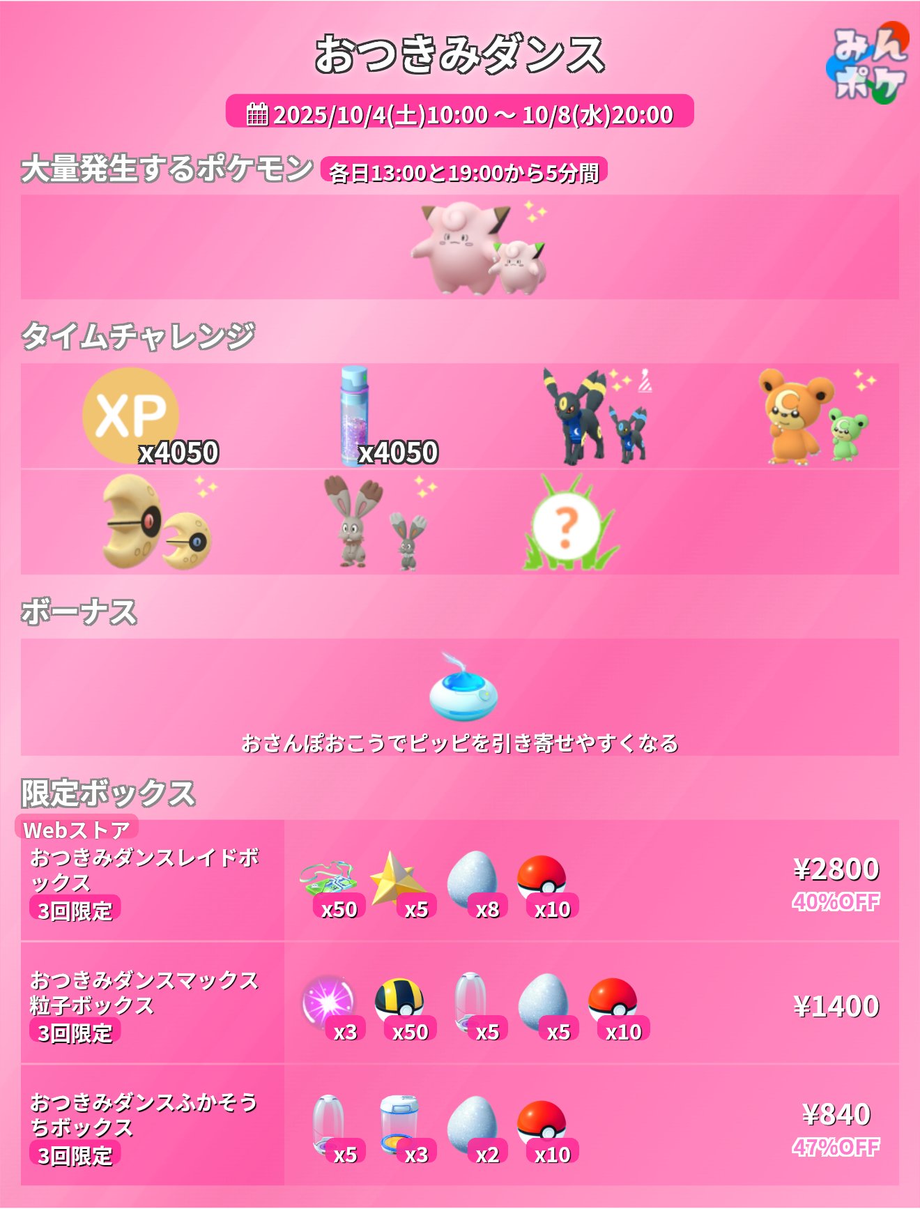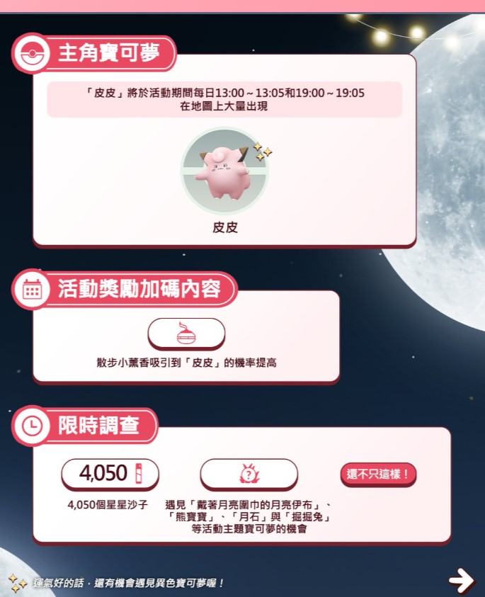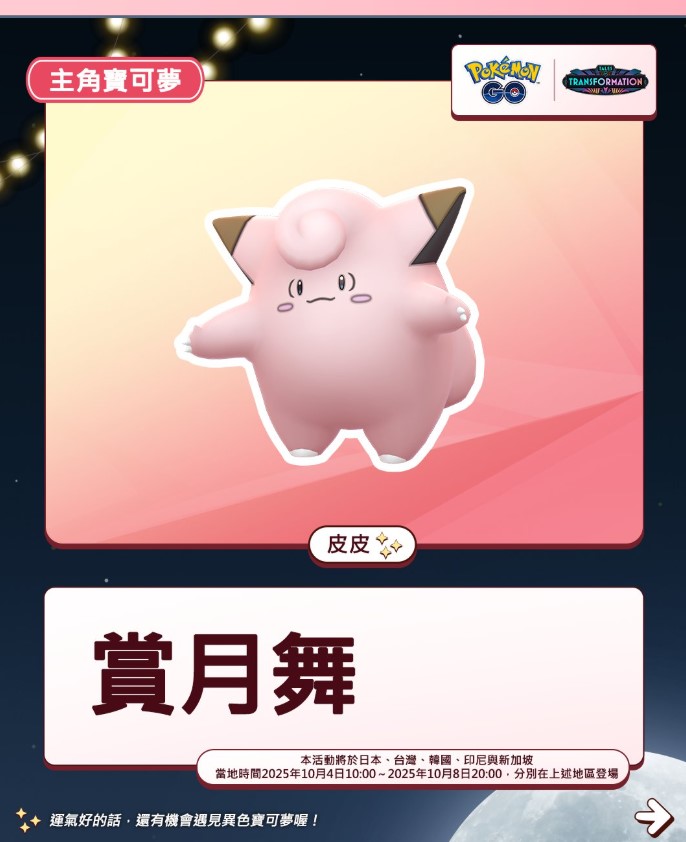 10/04 賞月舞限時調查任務、皮皮加碼獎勵、月亮圍巾月亮伊布 Pokemon GO 2025