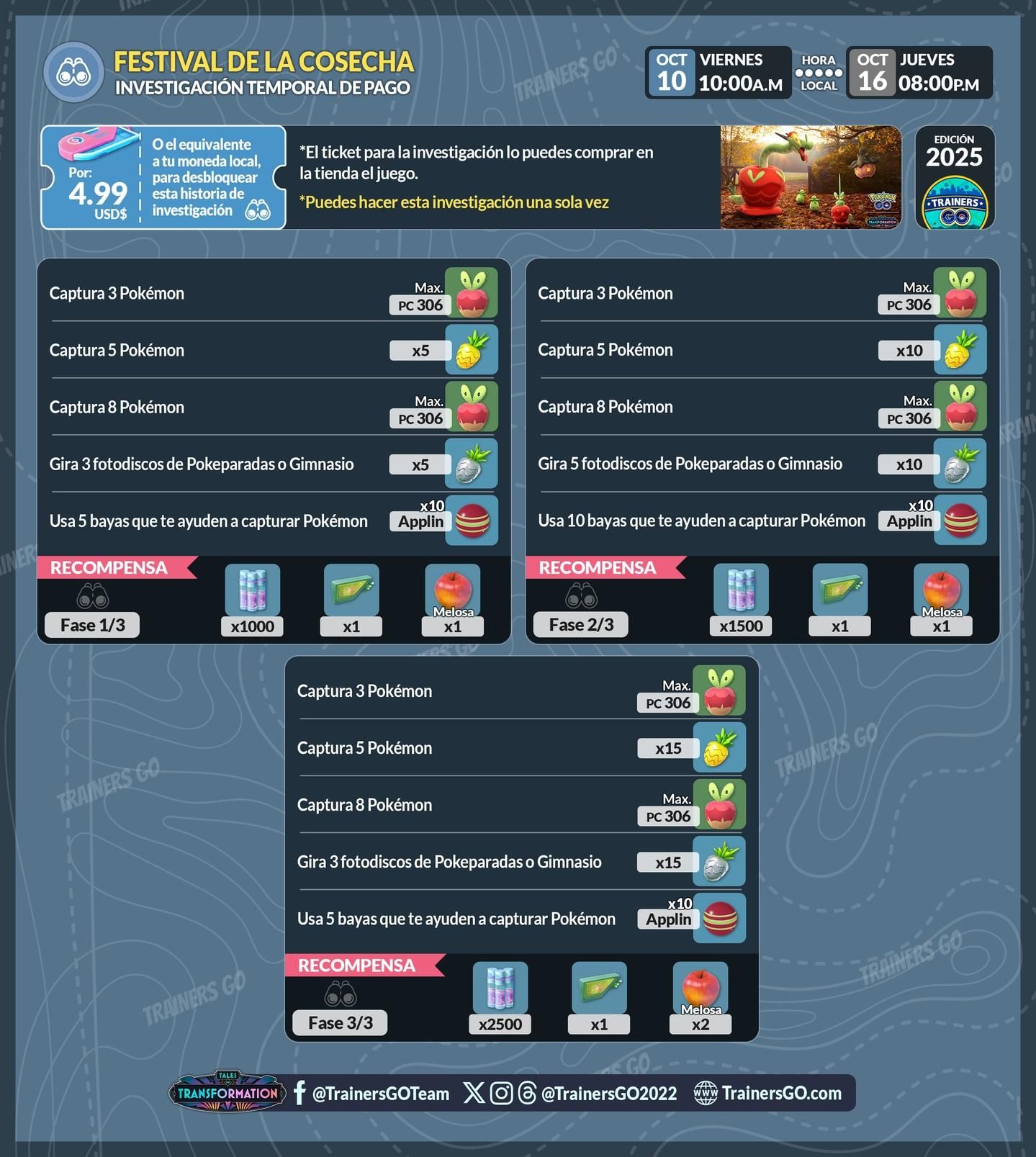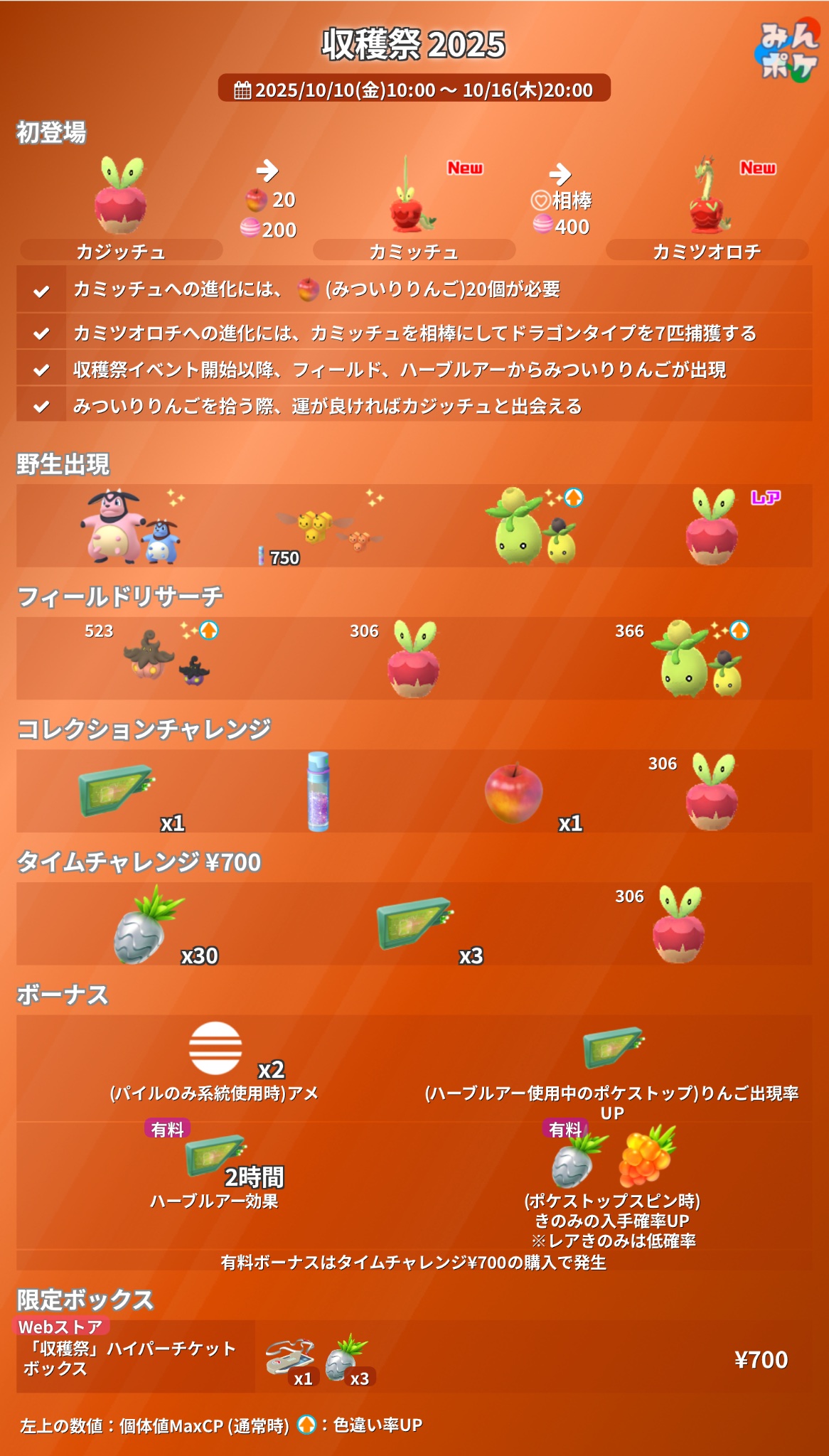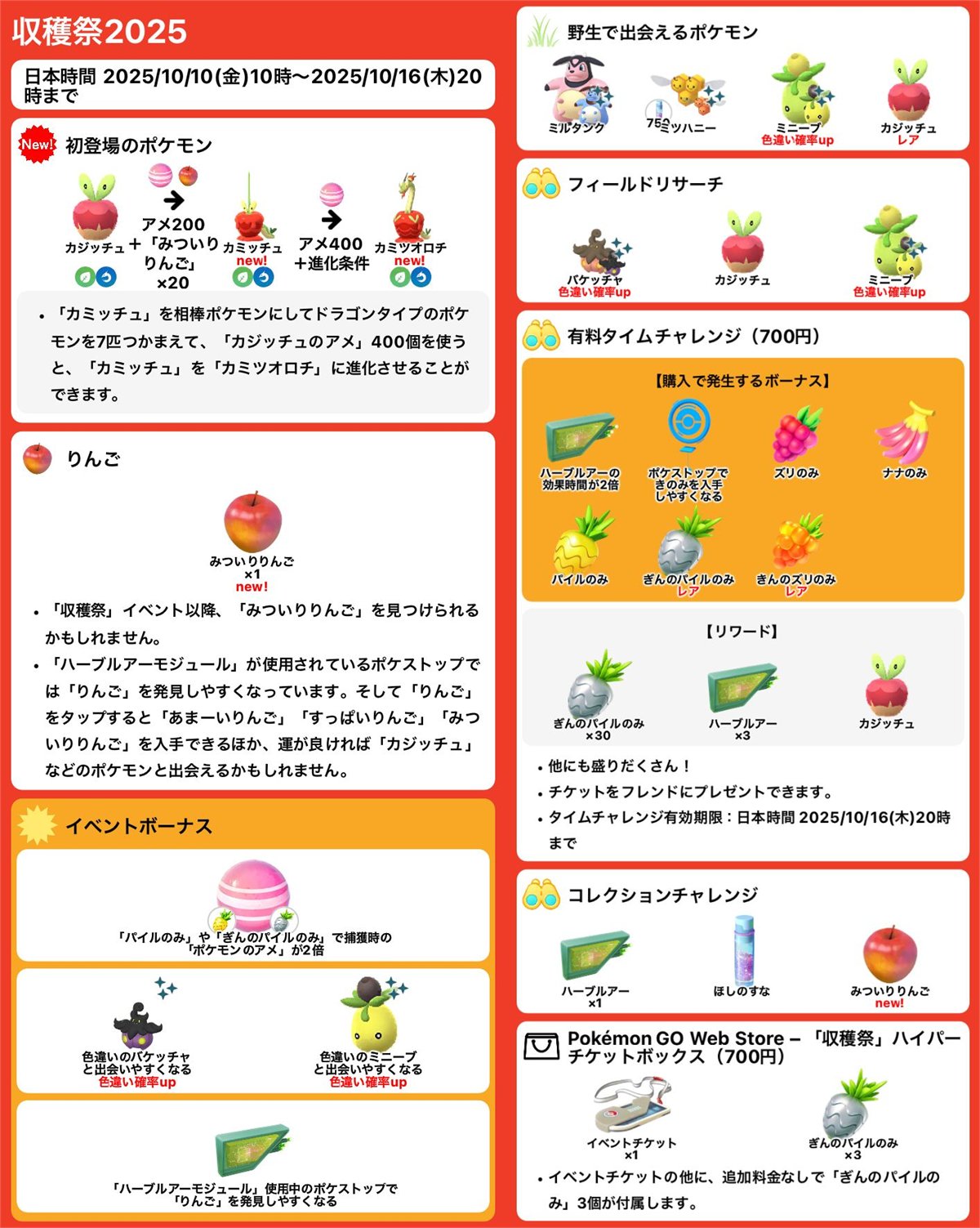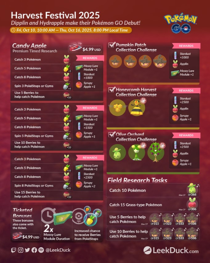 10/10 豐收節活動、裹蜜蟲&蜜集大蛇、付費限時田野調查任務、收藏家挑戰、加碼獎勵更新 Pokemon GO 2025