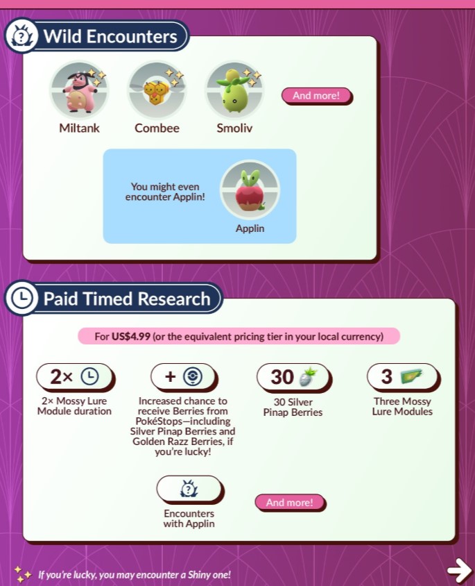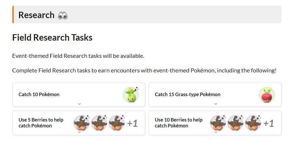 完成田野調查課題來獲得與「南瓜精」、「啃果蟲」、「迷你芙」等活動主題寶可夢相遇的機會吧!