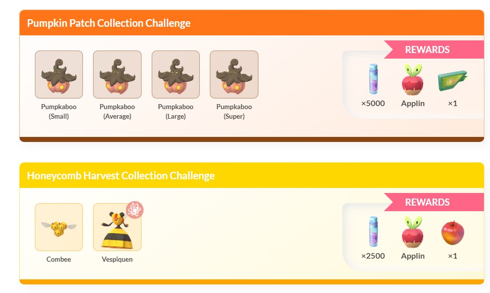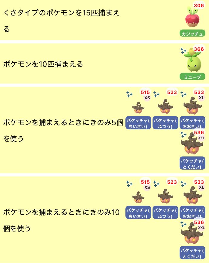 捕捉寶可夢時使用10個莓果:南瓜精(小尺寸)、南瓜精(普通尺寸)、南瓜精(大尺寸)、南瓜精(特大尺寸)