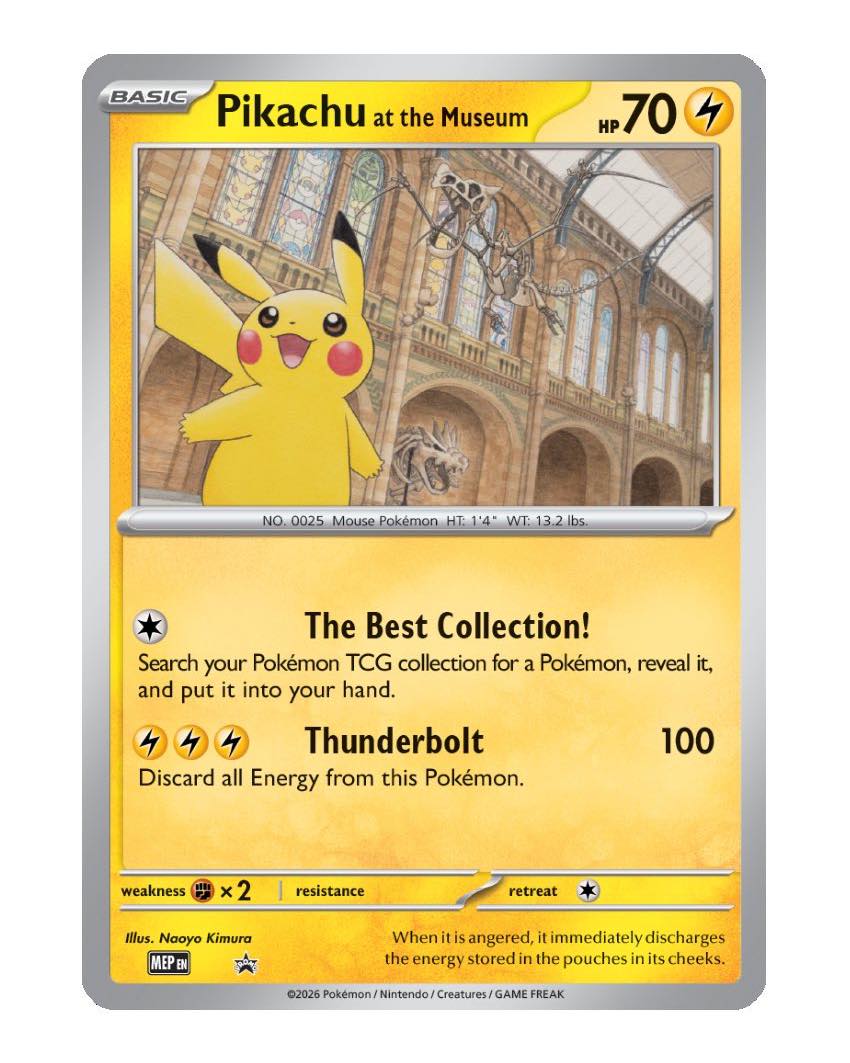 此外,一張特別的**「博物館裡的皮卡丘(Pikachu at the Museum)」大尺寸寶可夢 TCG 宣傳卡**也將於指定的英國零售通路登場。