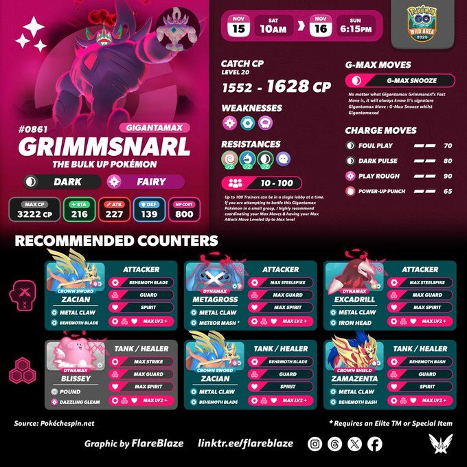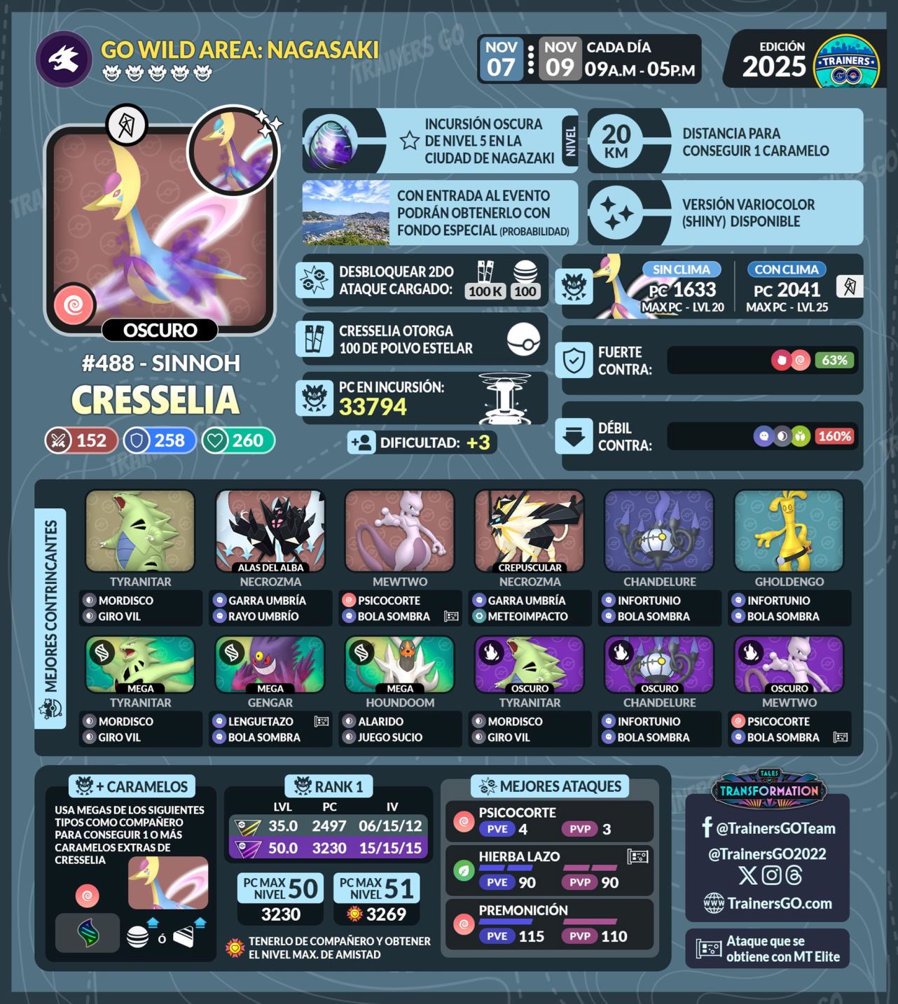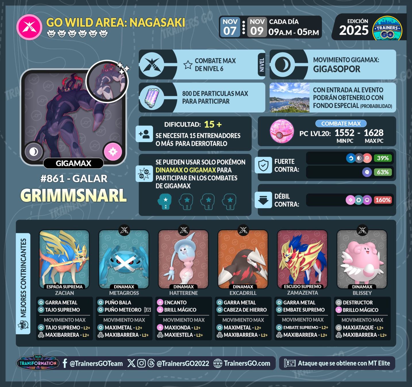 ⚠️ Recuerden: Grimmsnarl Gigamax, Cresselia oscuro, Darkrai oscuro y Bewear con capa estarán disponibles en todo el mundo durante el GO Wild Area Global, del 15 al 16 de noviembre de 2025.