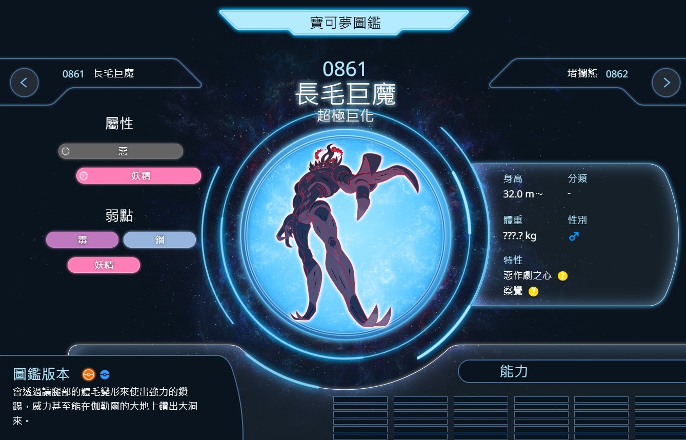 超極巨 長毛巨魔 (Gigantamax Grimmsnarl)  編號: #0861