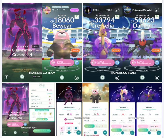 ▶ Cresselia oscuro, Darkrai oscuro y Bewear con capa están en incursiones, mientras que Grimmsnarl Gigamax será de combates MAX.