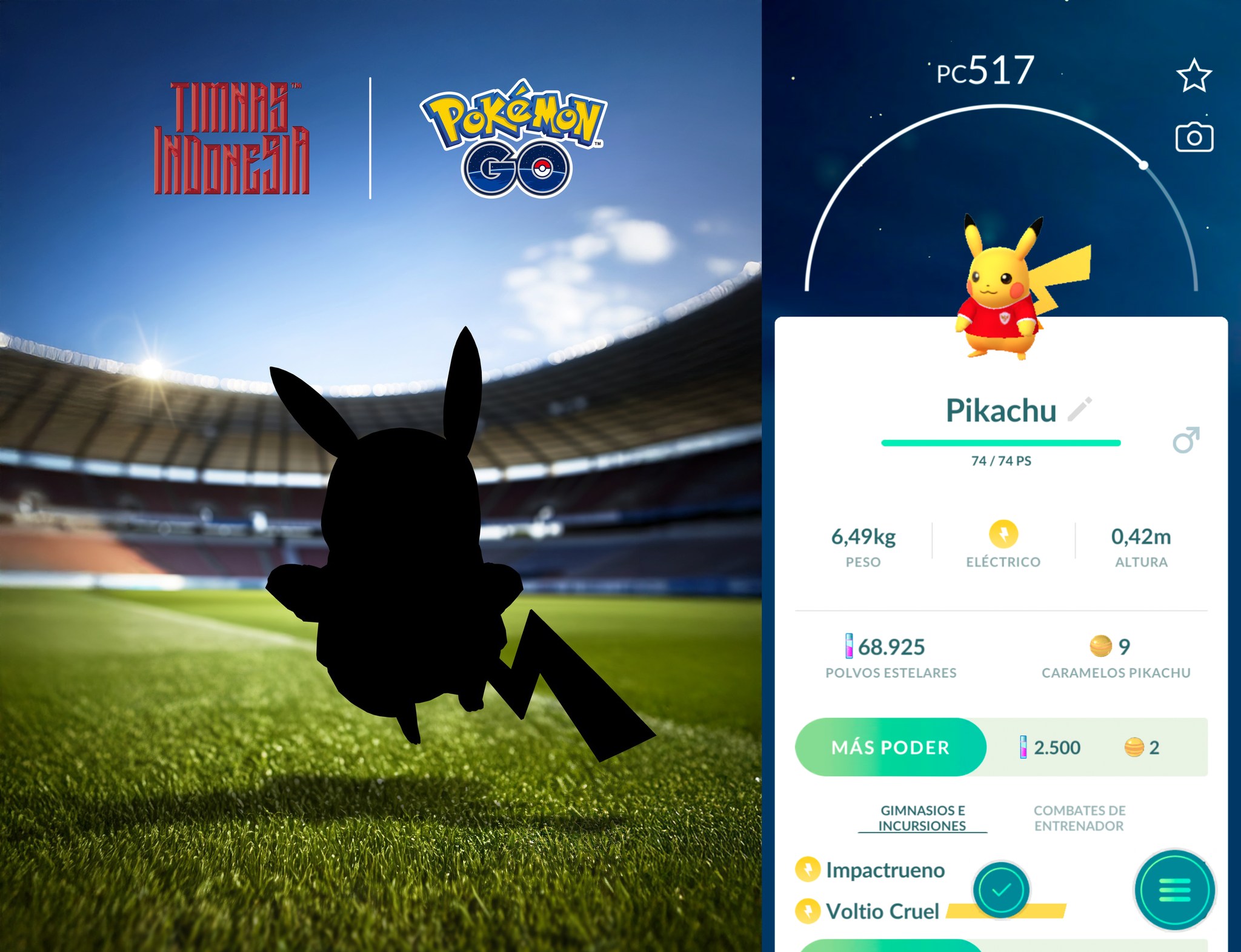 ▶Recuerden que Pikachu con una camiseta de Indonesia puede salir en su versión variocolor (shiny)