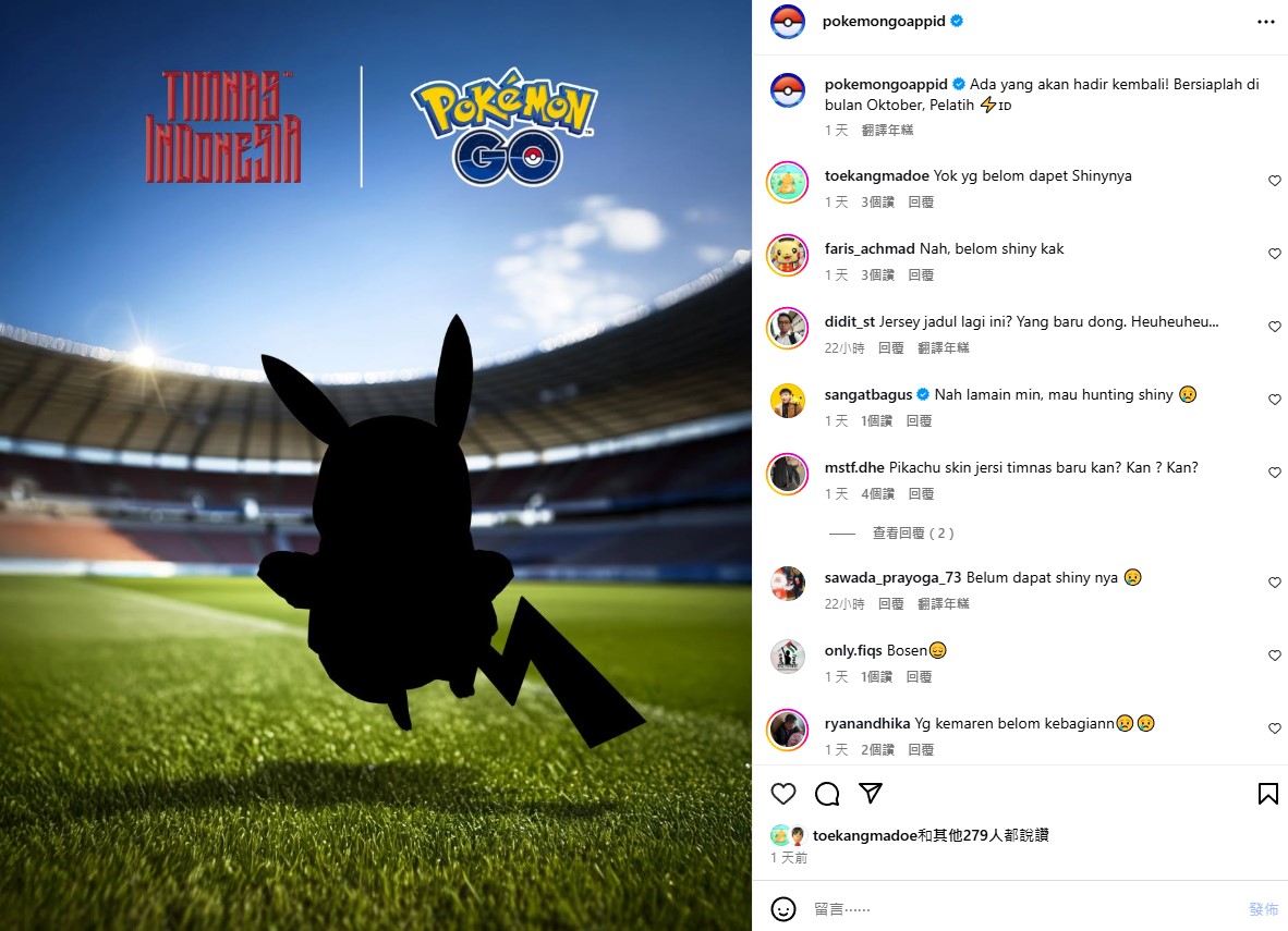 穿著足球衣的皮卡丘將在十月重返 Pokémon GO,並且是印尼 獨家活動。