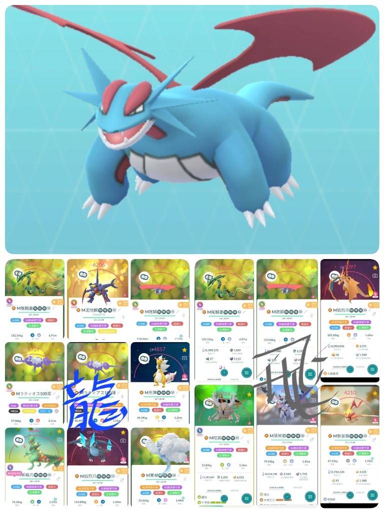龍系有9隻:烈空座,暴飛龍,烈咬陸鯊,拉帝歐斯,拉帝亞斯,蜥蜴王,七夕青鳥,電龍,噴火龍x