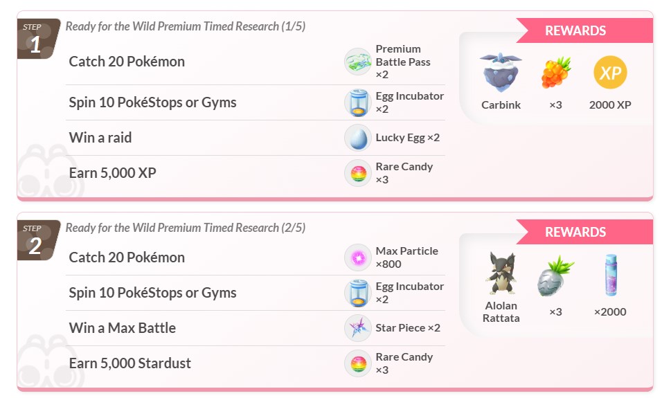完成步驟獎勵:阿羅拉 小拉達 (遭遇) 銀色鳳梨果 x3 x2000 星星沙子