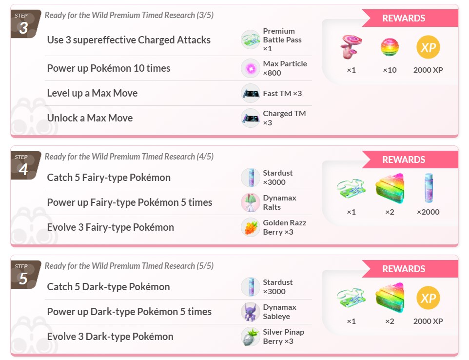 將妖精屬性寶可夢強化5次 (獎勵: 極巨化拉魯拉絲)