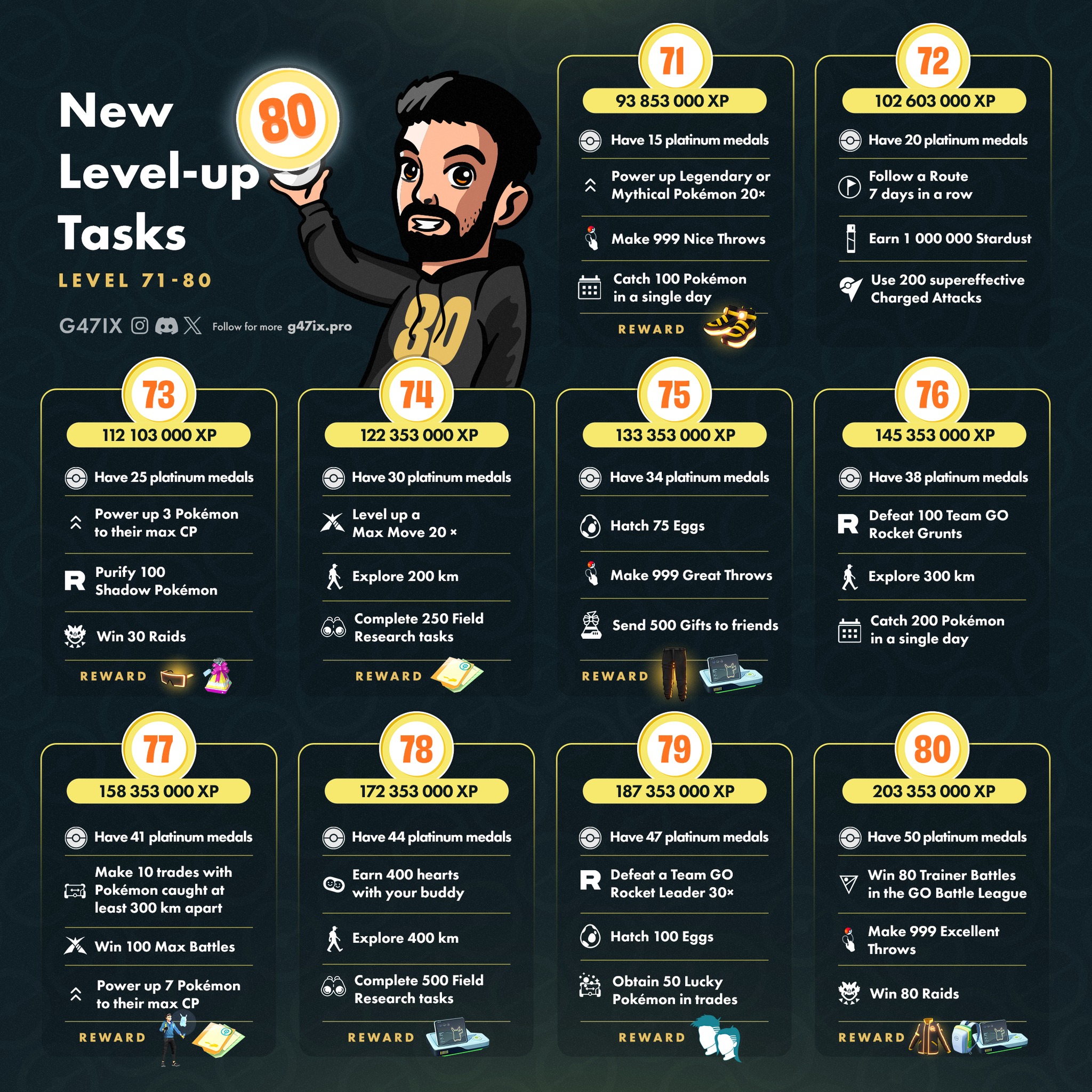Pokémon GO New Level-up Tasks: Level 71-80 (English Version)