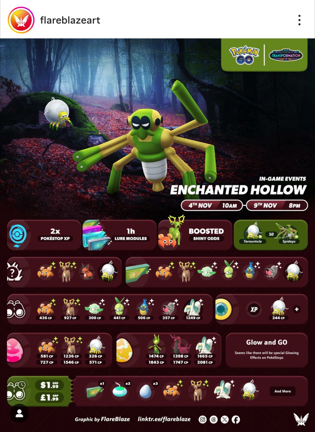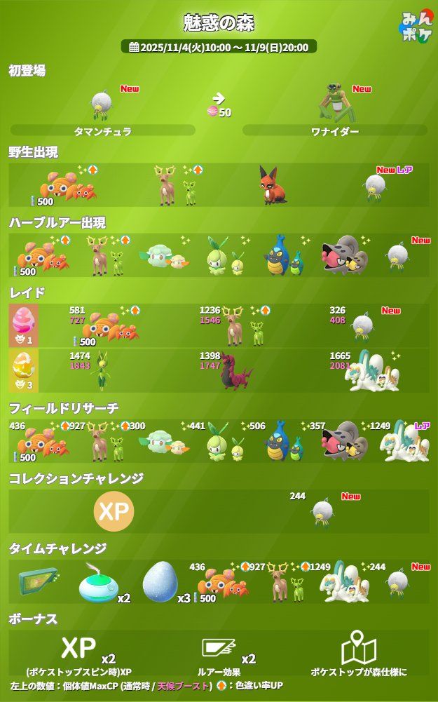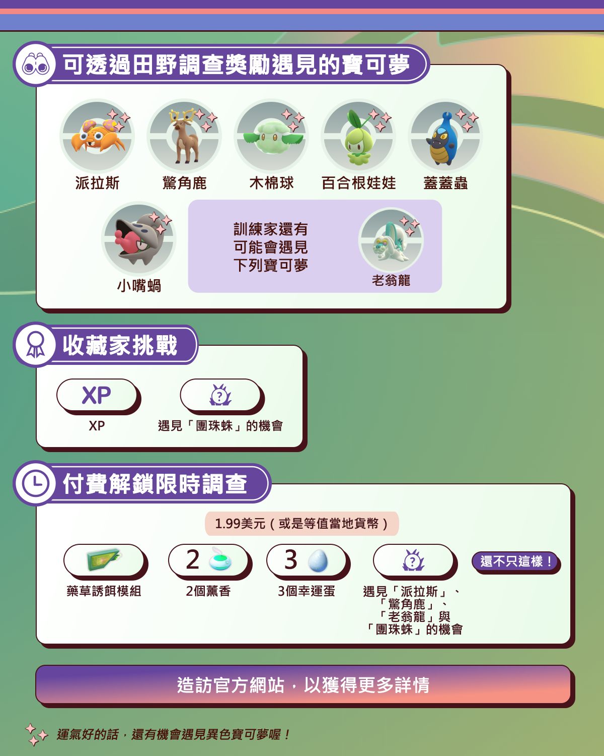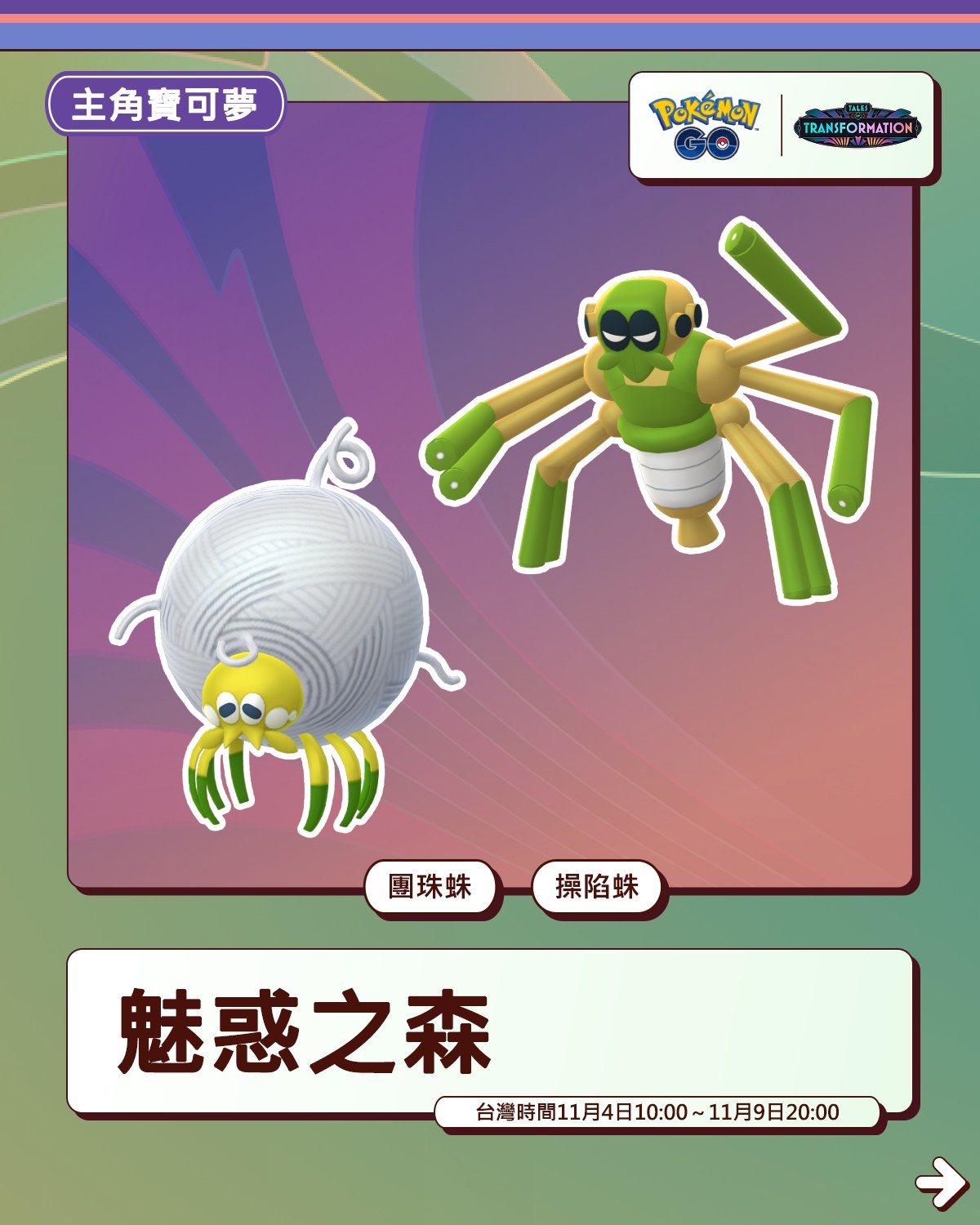 11/04 魅惑之森活動、田野調查課題限時任務、團珠蛛&操陷蛛、跟著螢光GO、獎勵加碼、收藏家挑戰 Pokemon GO 2025