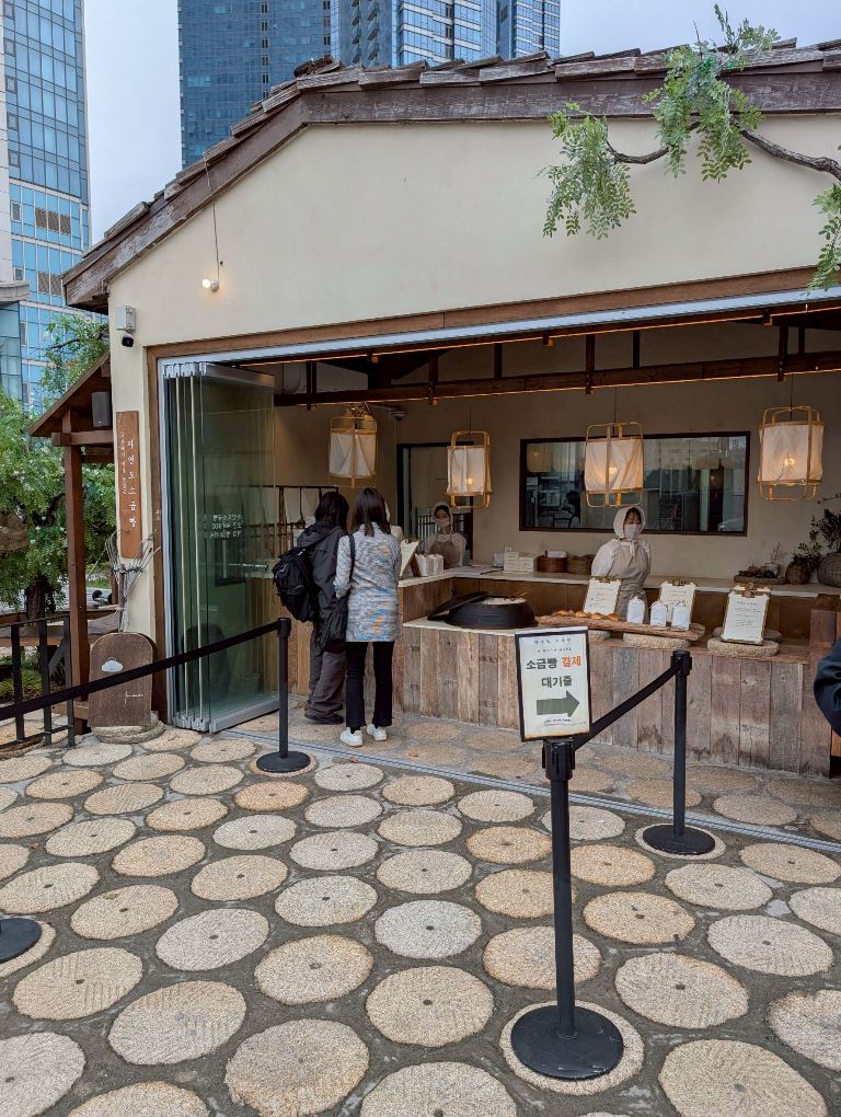 店面設計: 採用傳統韓屋造型,店前的大鐵鍋 (가마솥) 裡裝滿了鹽,是其標誌性的打卡點。