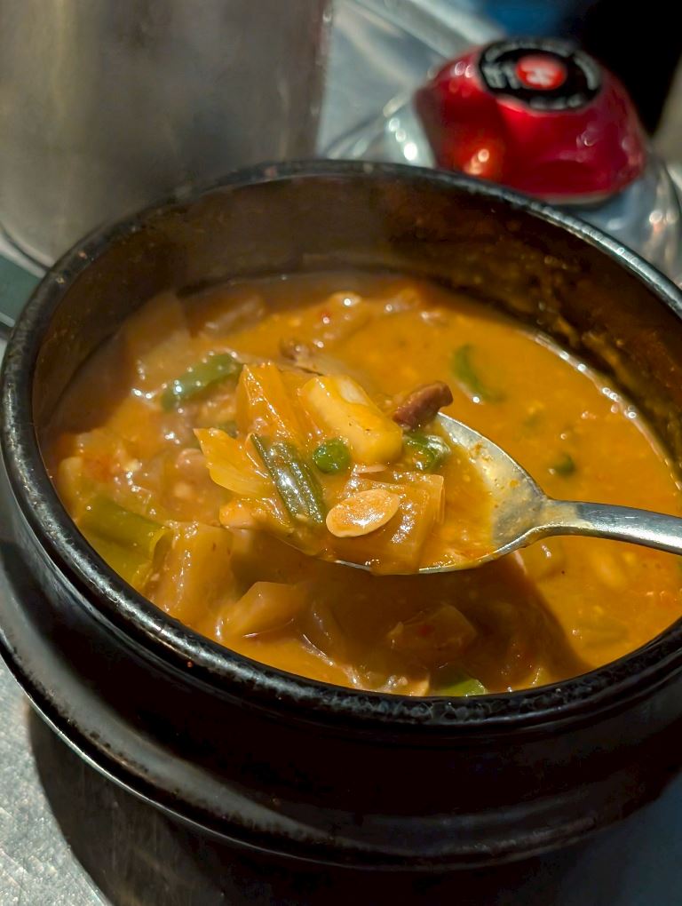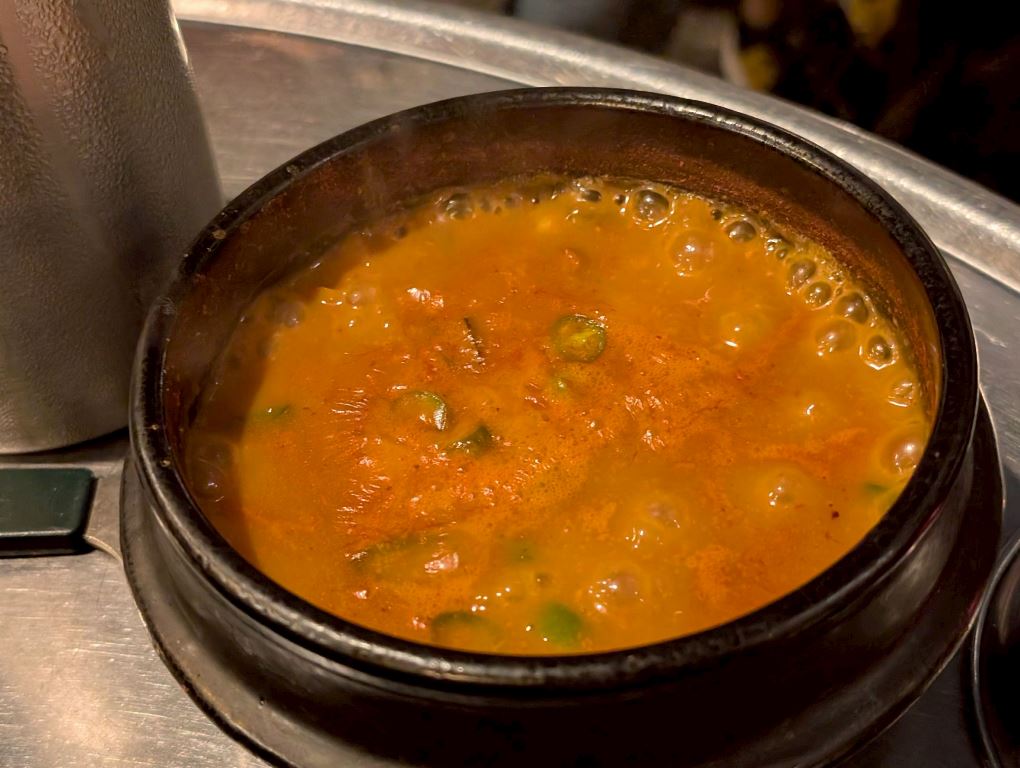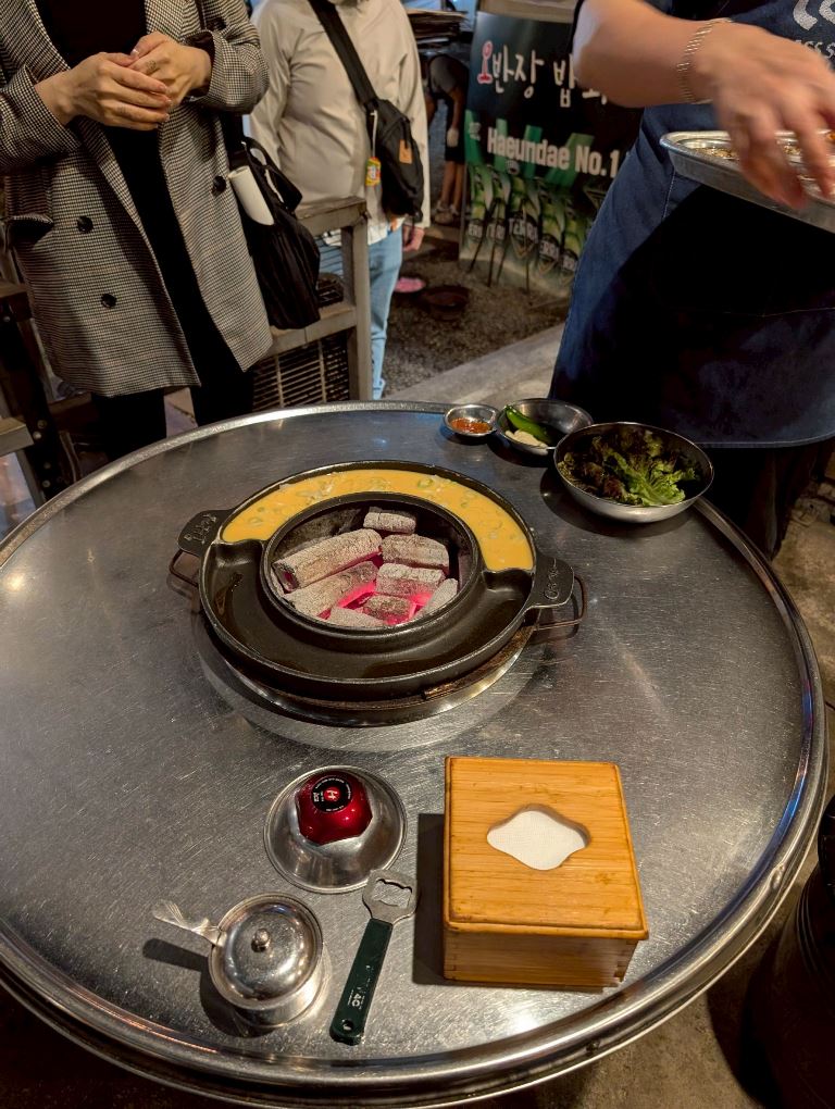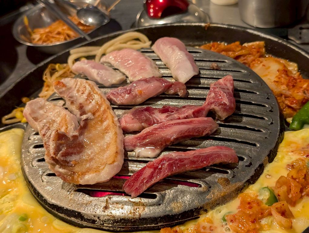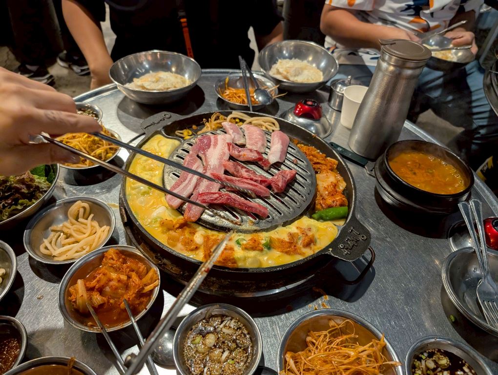 Special Grill: The restaurant is famous for its unique grill design. It features an outer ring or moat around the central grill. Staff will pour a seasoned egg mixture (Gyeran-jjim) into this ring, which cooks into a fluffy steamed egg as you grill your meat. This outer section is also perfect for grilling kimchi, bean sprouts, and garlic.