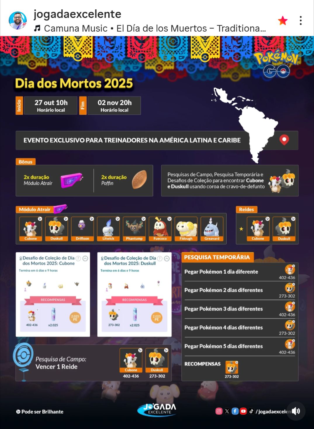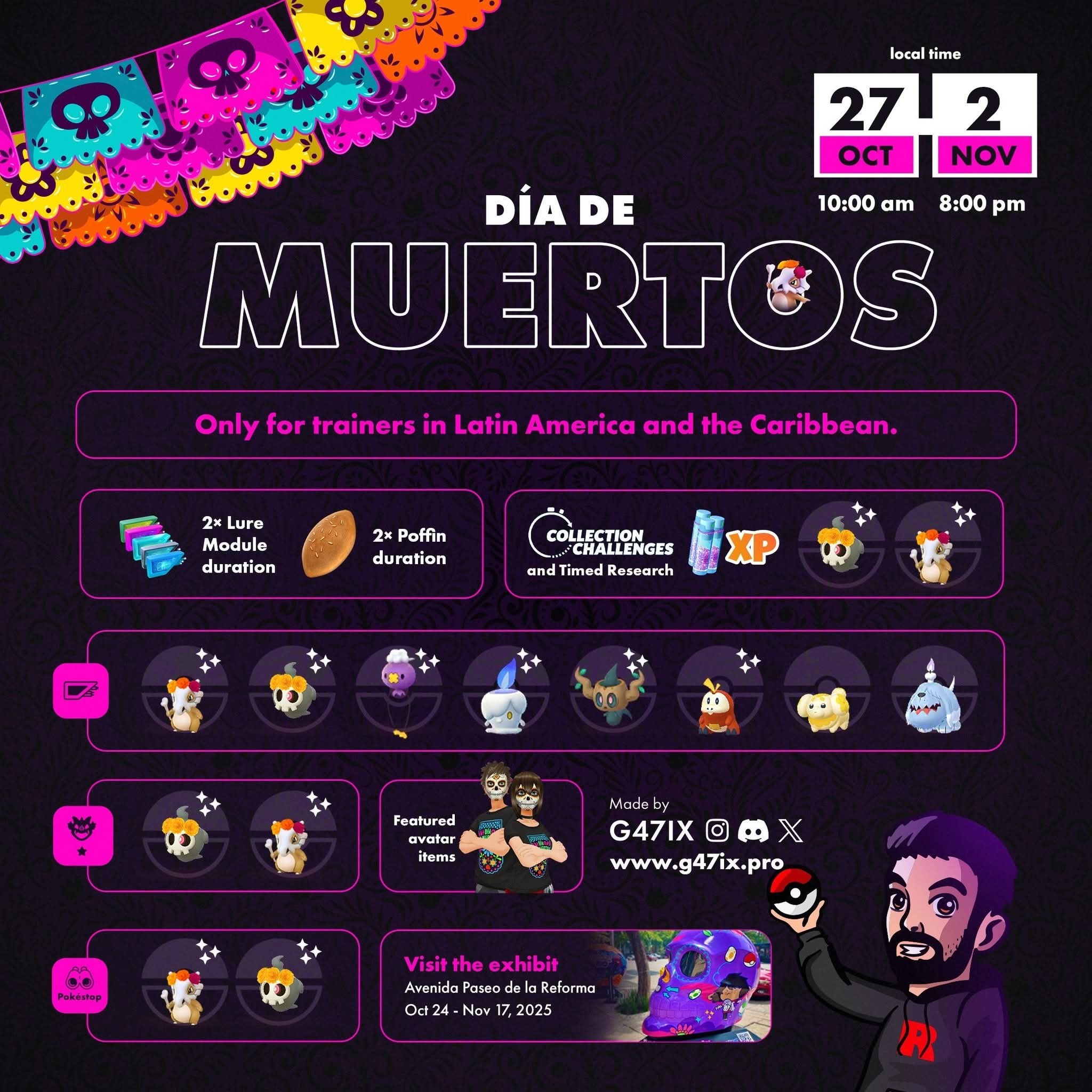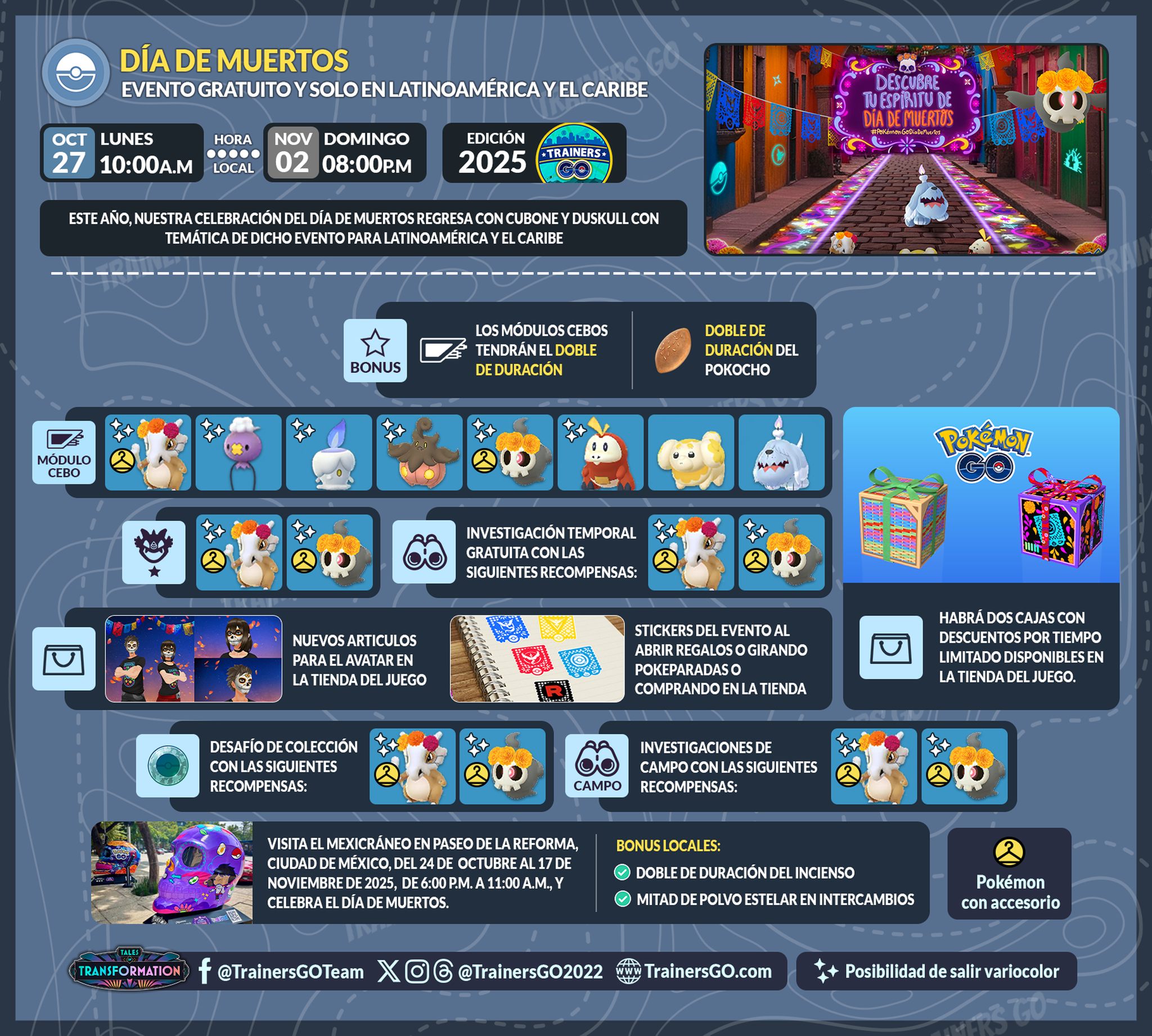 🤓 Trainers, aquí les compartimos información adicional sobre el evento “Día de Muertos 2025” en Pokémon GO, solo para Latinoamérica y el Caribe.