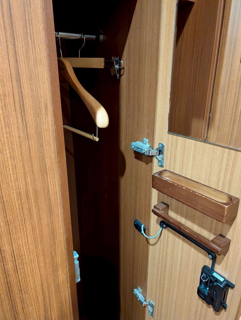 用同一把鑰匙,找到相同號碼的衣物置物櫃 (옷장)。