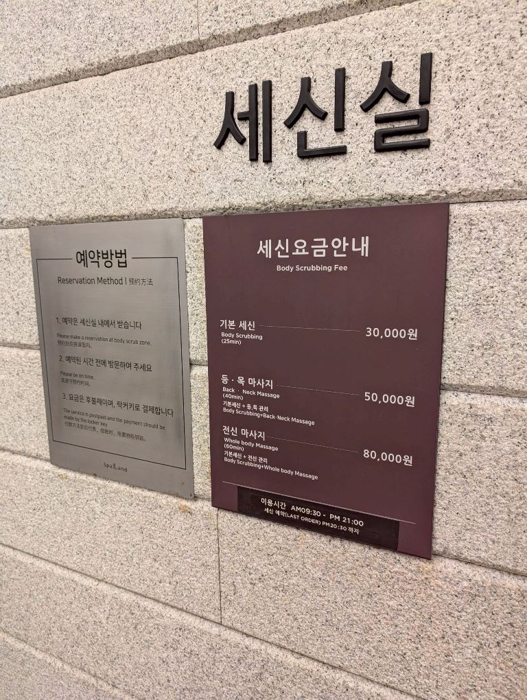 (可選)搓澡 (세신): 許多汗蒸幕有「阿珠媽」(大媽)或「阿揪西」(大叔)提供專業的搓澡服務,需額外付費,可以用電子鑰匙記帳。