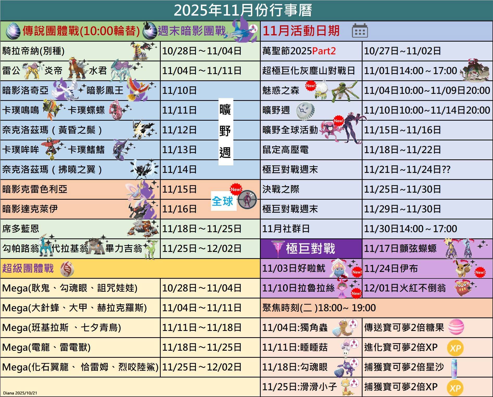 11/10 卡璞.嗚嗚、卡璞.蝶蝶、超級班吉拉、超級七夕青鳥 團體戰資訊更新 Pokemon GO 2025