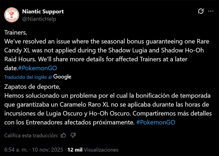 11/10 大糖果BUG補償 Pokemon GO 2025