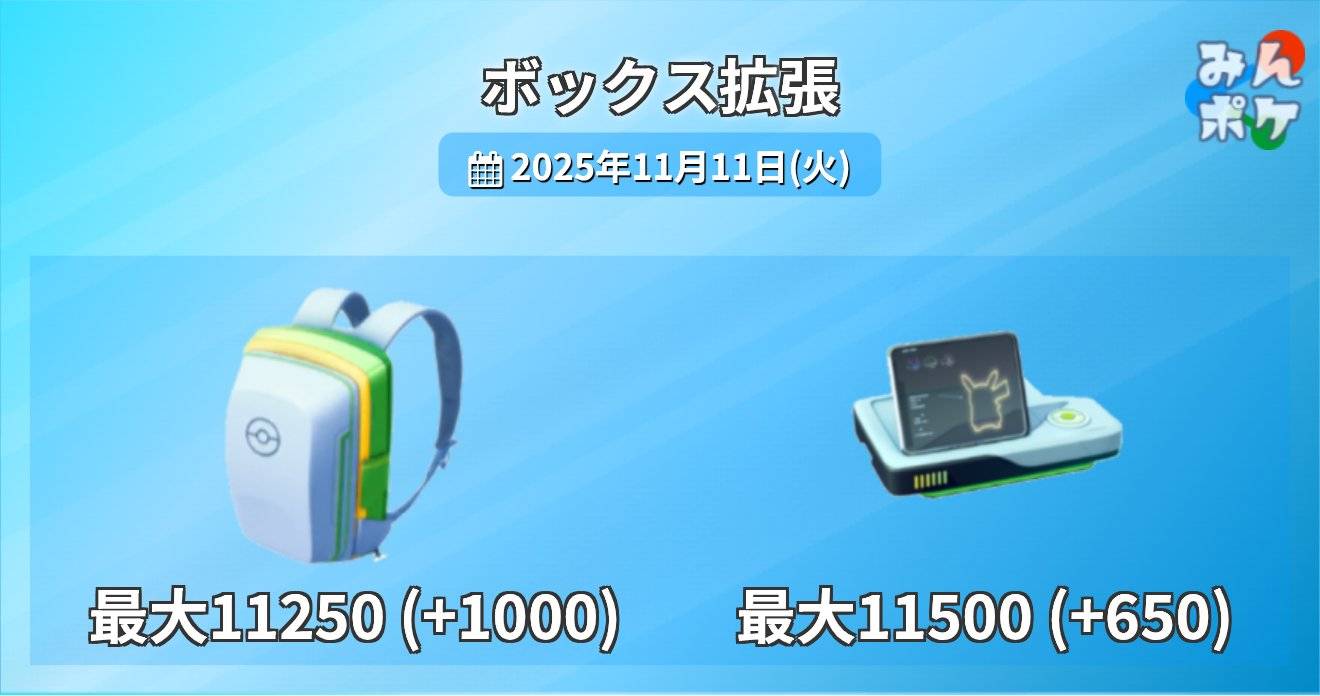 寶可夢盒容量上限已增加650格,現在最多可以容納11,150隻寶可夢。