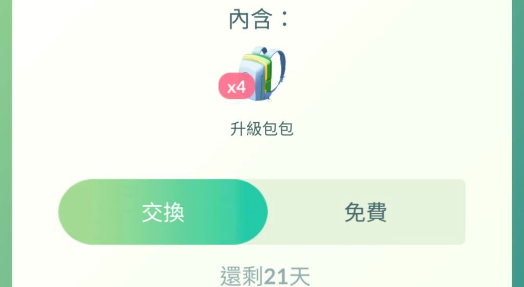 為了感謝各位訓練家的支持,我們將提供免費的道具包包容量升級獎勵,可使包包的容量上限增加200格。快到商店領取獎勵吧!