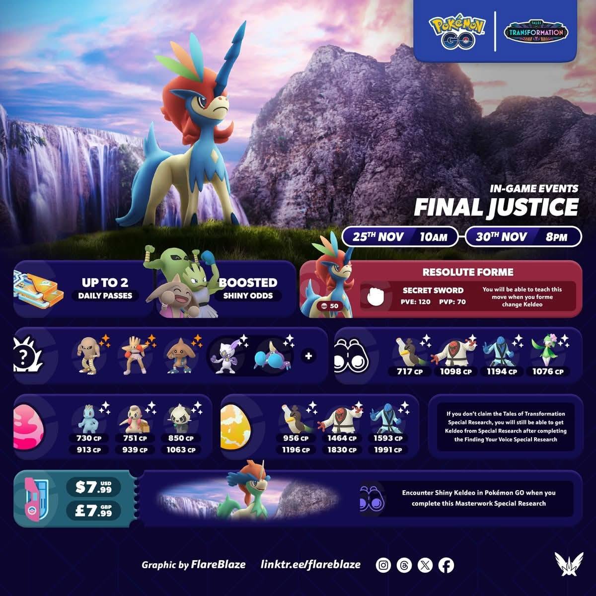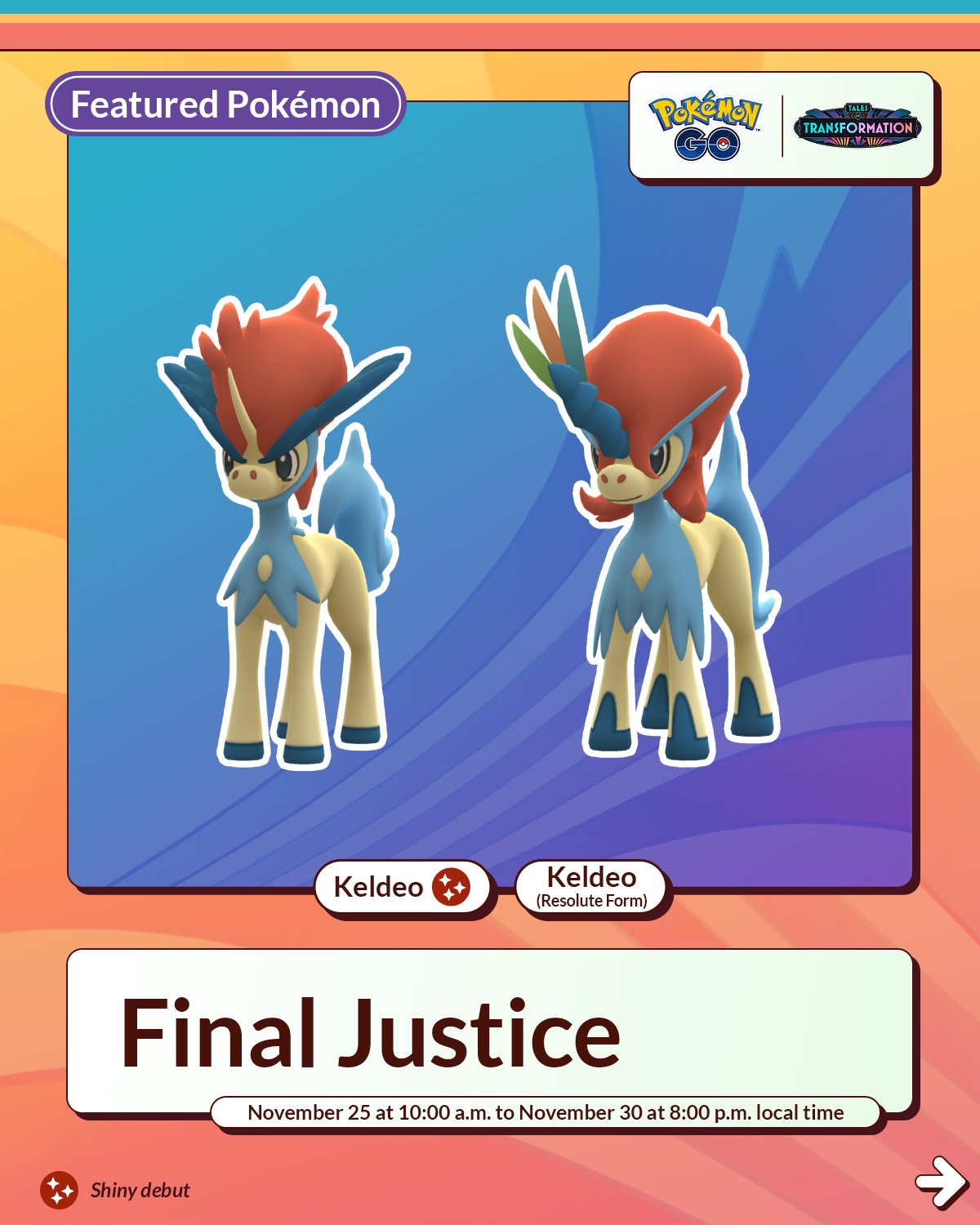 由於現在 (2025年11月) 正值 “Final Justice” 活動期間,您有機會將凱路迪歐變換為「覺悟樣子」並學會新招式。