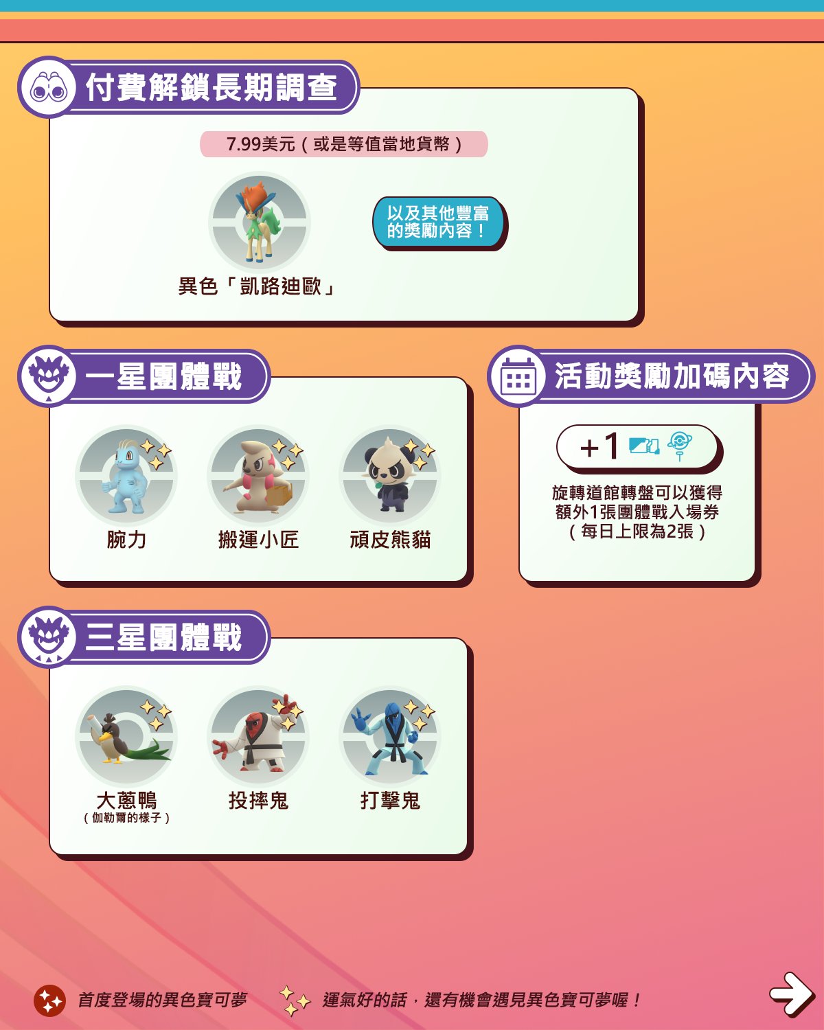 訓練家可以在「千變萬化的故事」季節於台灣時間2025年12月2日10:00結束前,領取本次的特殊調查。