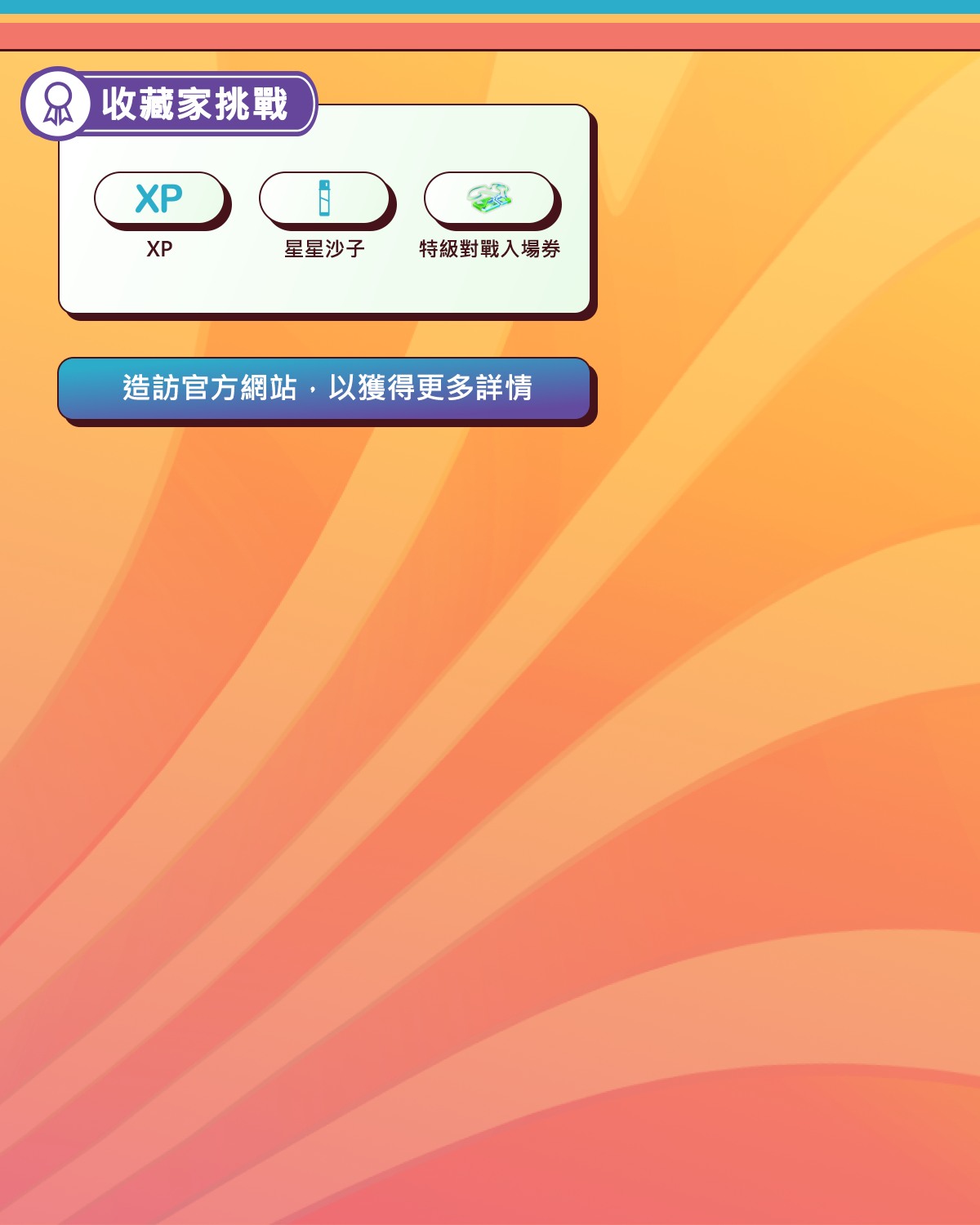 只要完成收藏家挑戰,就能獲得XP、星星沙子和特級對戰入場券!