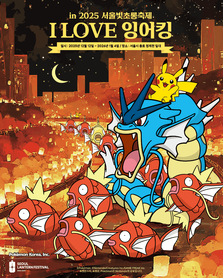 100隻由傳統韓紙製作的鯉魚王和大型「暴鯉龍 with 皮卡丘」將在清溪川登場。 從會動的鯉魚王到隱藏的金色鯉魚王, 將展開一場規模盛大的花燈展。