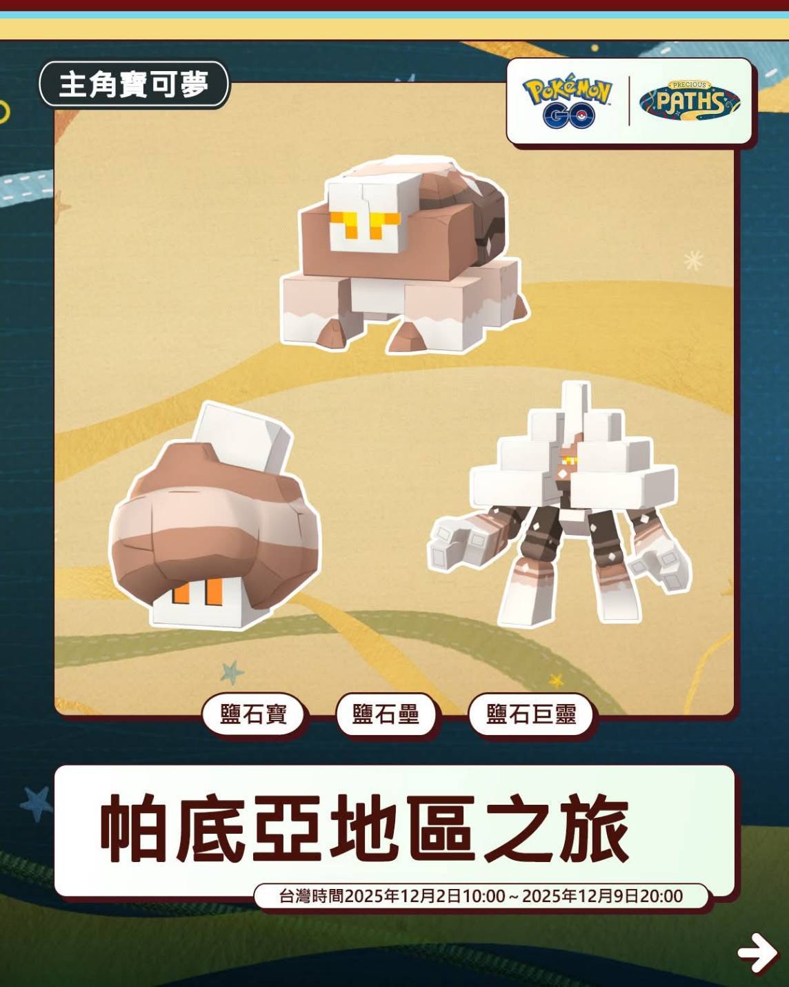 12/02 帕底亞地區之旅 田野調查任務 收藏家挑戰 付費解鎖限時任務 鹽石寶、鹽石壘、鹽石巨靈 Pokemon GO 2025