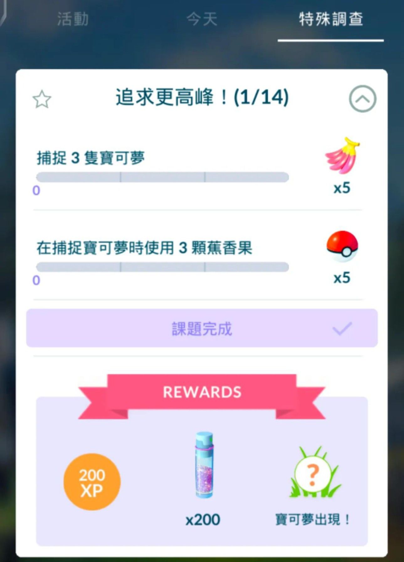 捕捉3隻寶可夢- -獎勵5個蕉香果