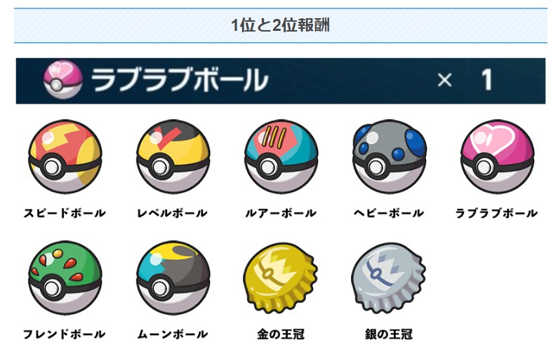 稀有球種:第1名(7%機率)、第2名(3%機率)可獲得競賽球以外的各種柑果球/稀有球。