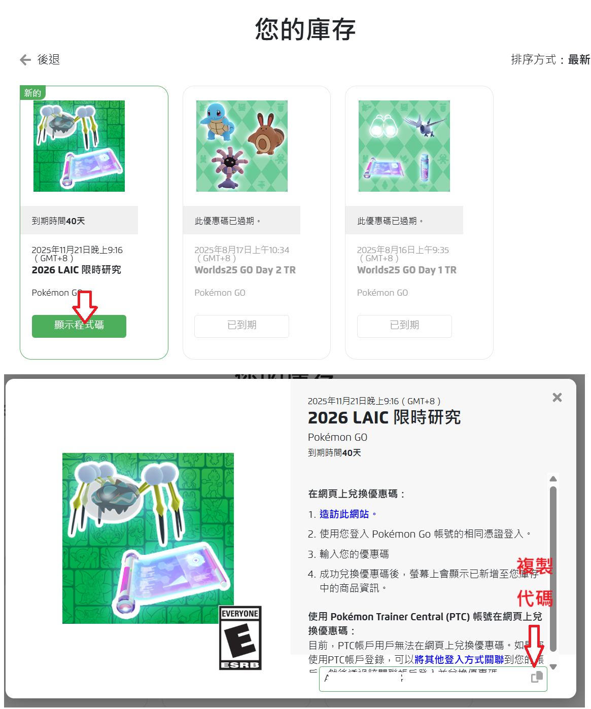 序號領到之後再到這裡輸入:https://store.pokemongo.com/zh-TW/offer-redemption