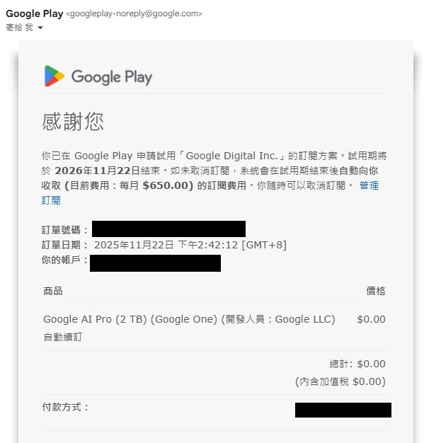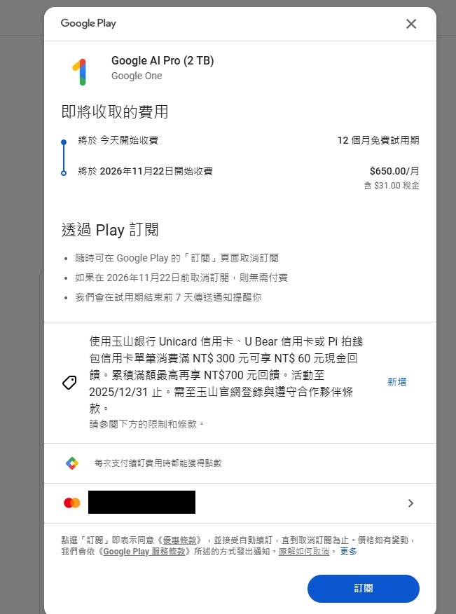 4.驗證完 輸入信用卡即可0元獲得Google Gemini 3 Pro