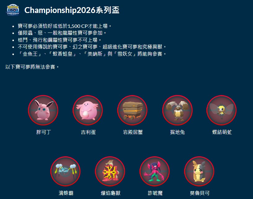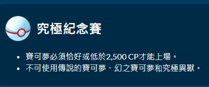 規則: 1500 CP,禁用惡、鋼、妖精。