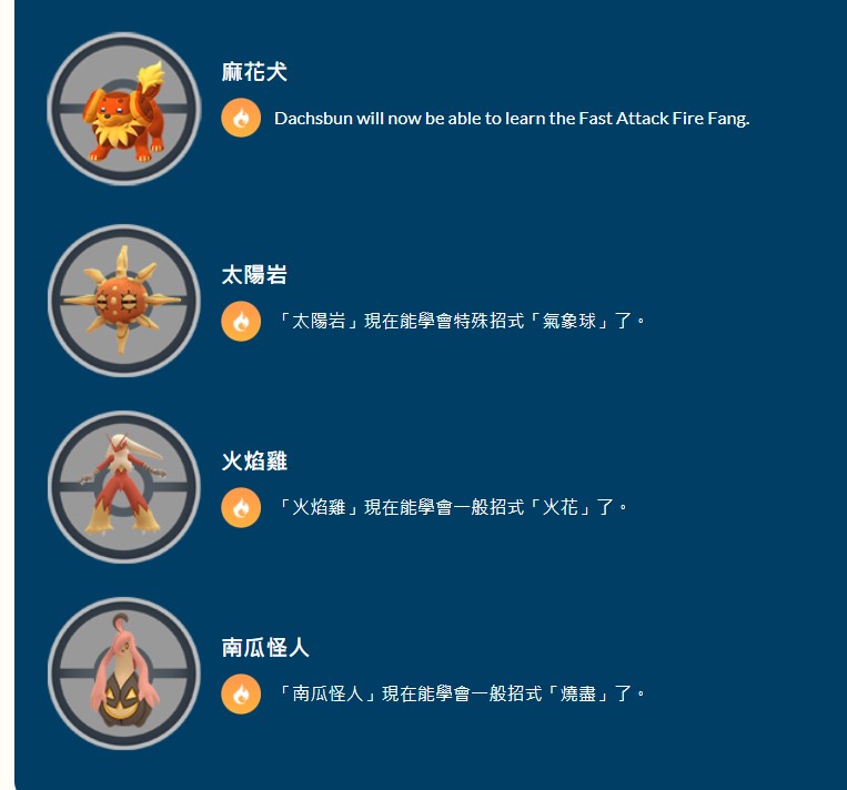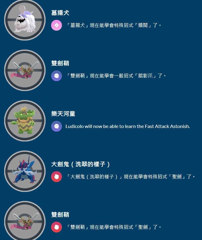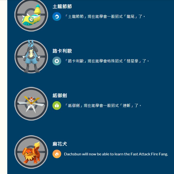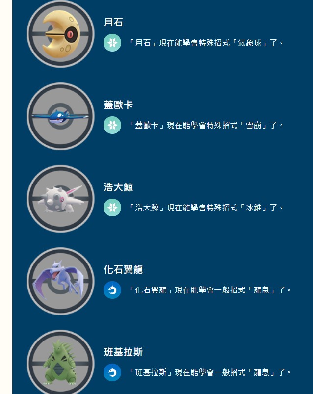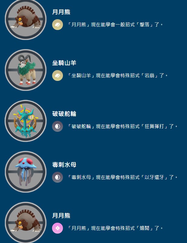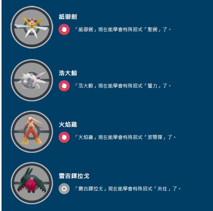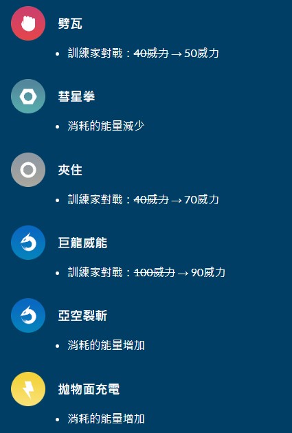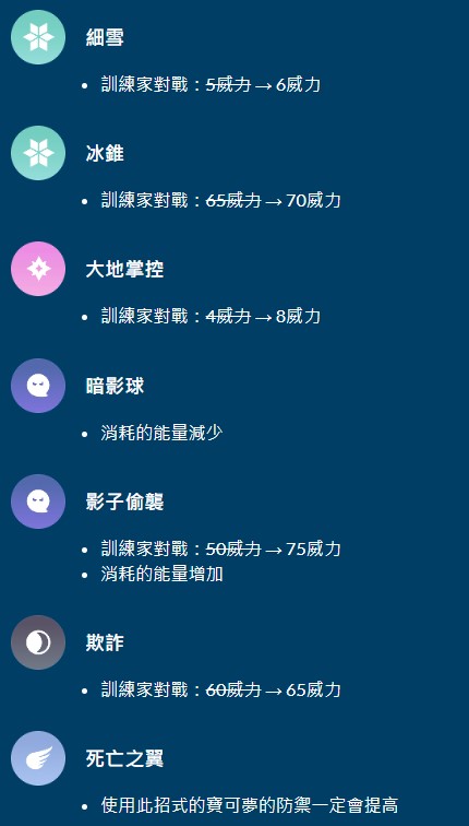 本賽季針對多隻寶可夢進行了招式調整或新增: