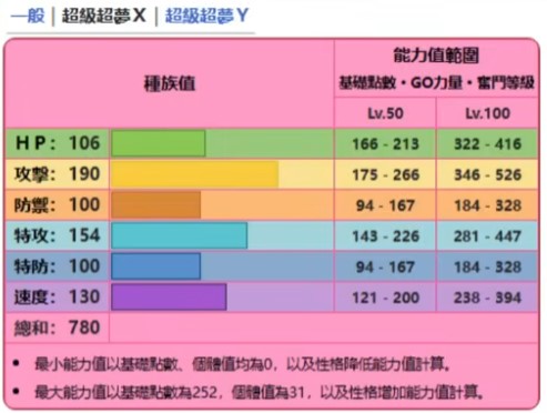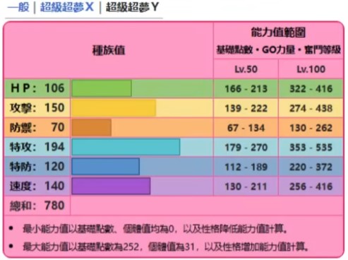 特攻種族值高達 194,是目前遊戲中最高的特攻輸出。