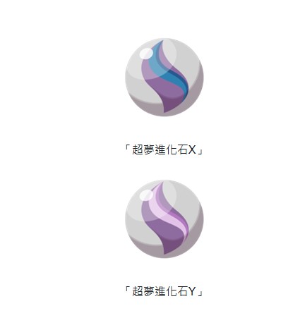 ※讓超夢攜帶超夢進化石X,就能讓牠超級進化成超級超夢X;攜帶超夢進化石Y,就能讓牠超級進化成超級超夢Y。
