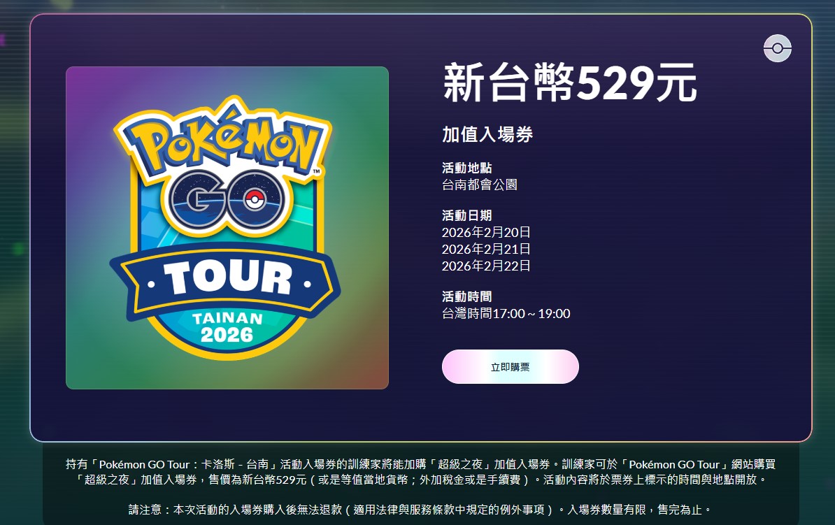 02/20 超級之夜 Pokémon GO Tour:卡洛斯-台南 全新限時調查任務 2026