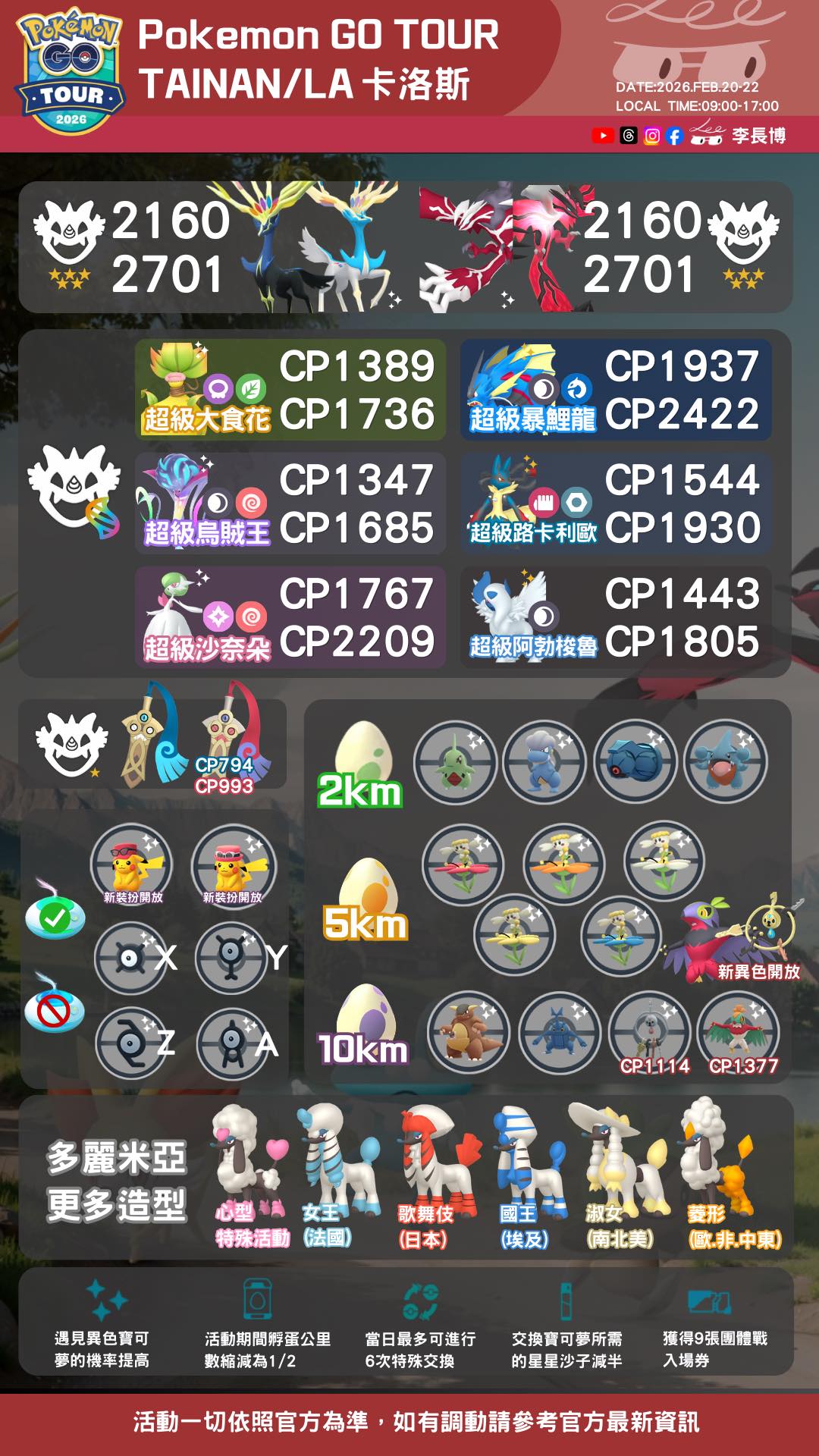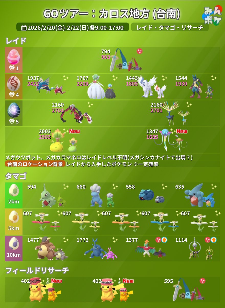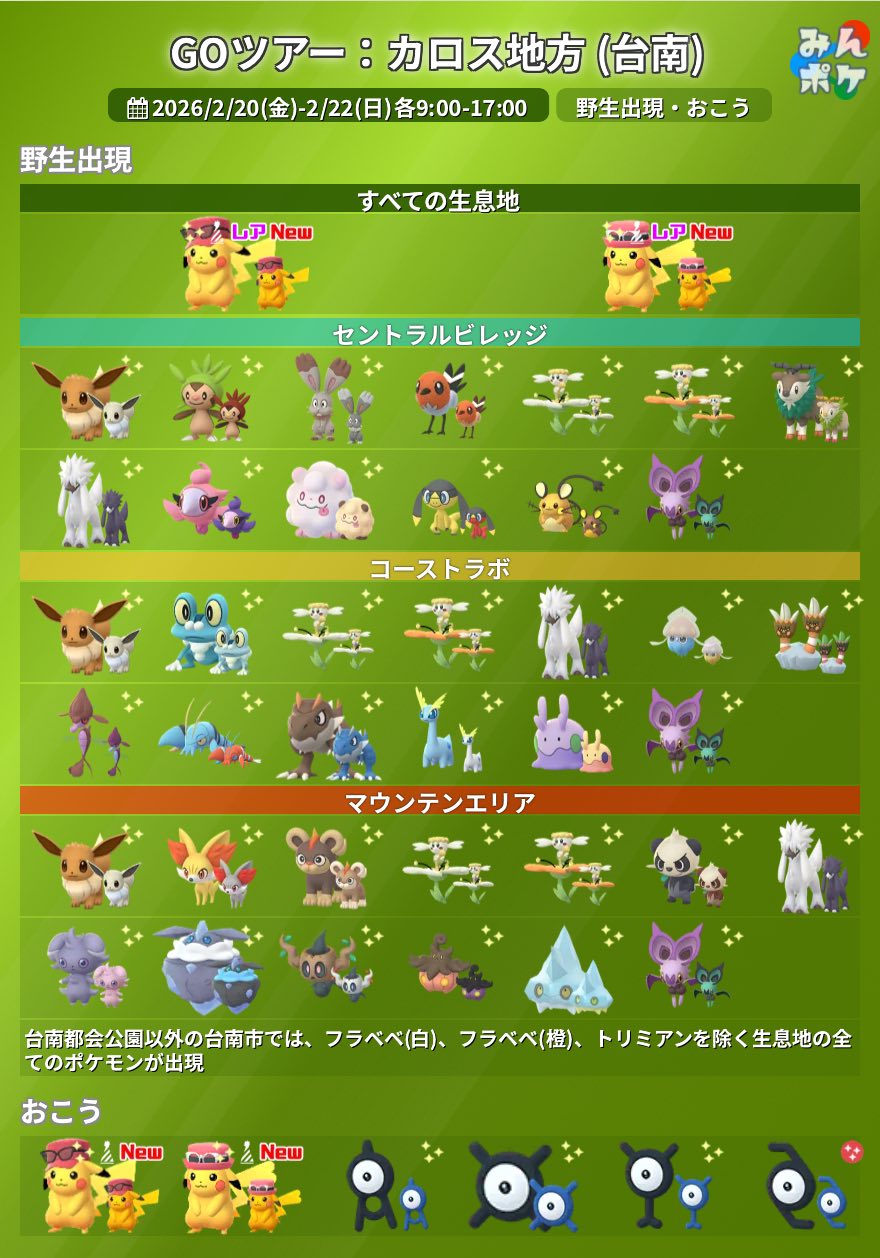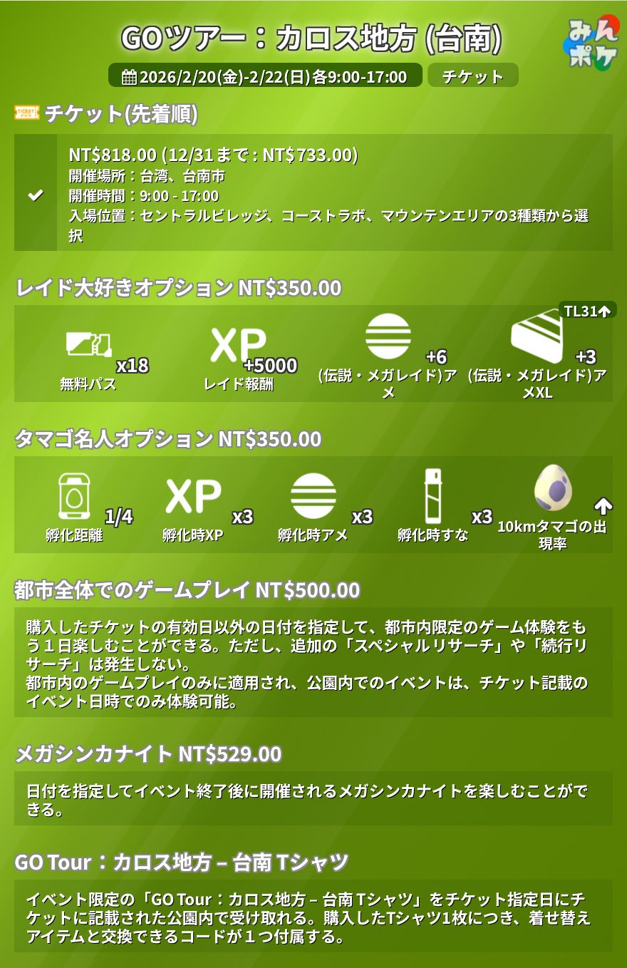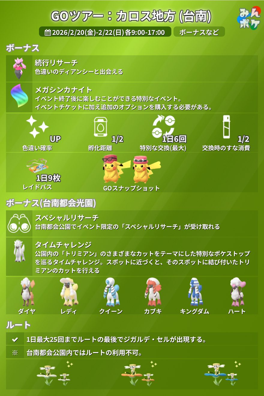 02/20-22 Pokémon GO Tour:卡洛斯-台南 2026 活動資訊更新