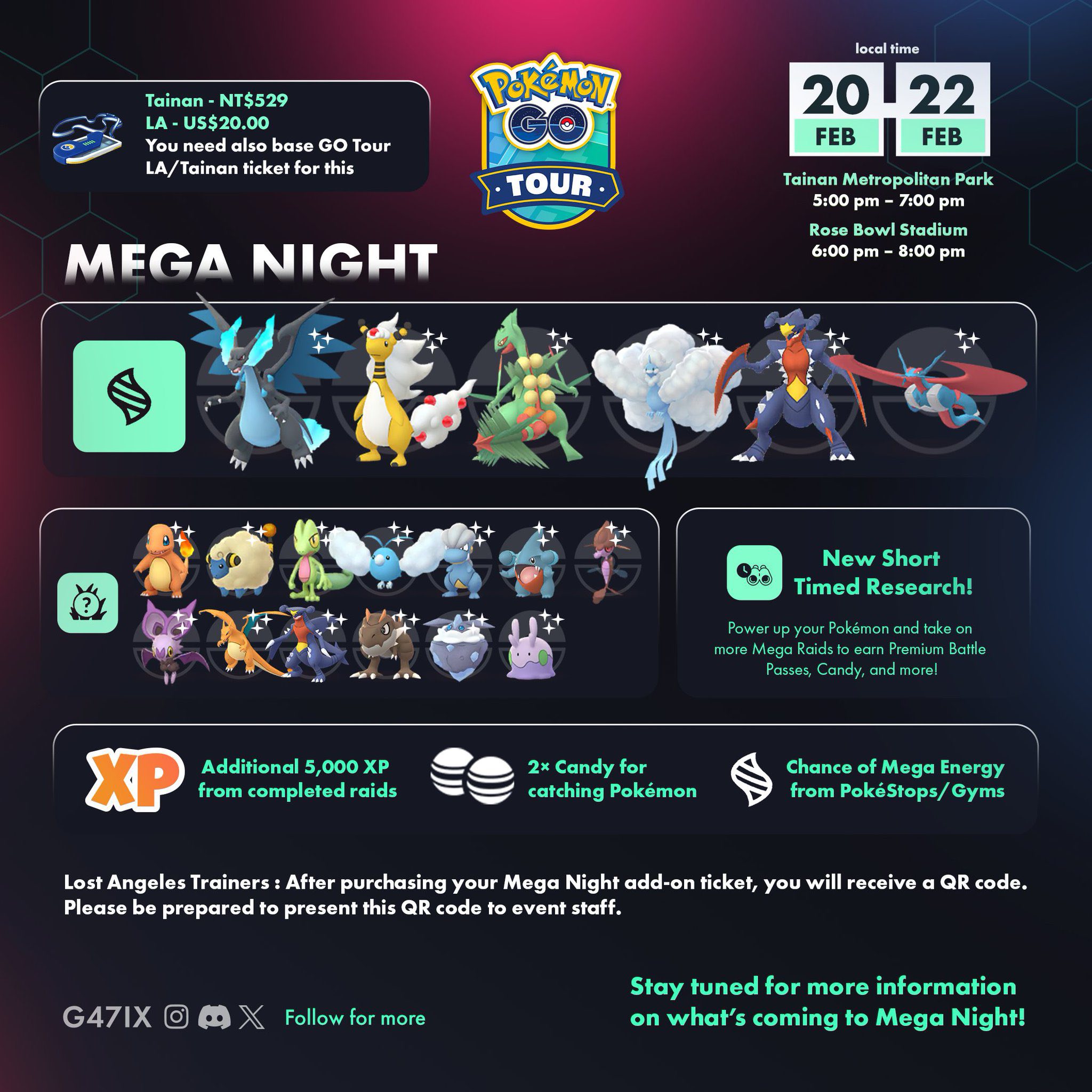 ▶️ 以下為「超級之夜(Mega Night)」期間將於超級團體戰中出現的寶可夢(此為加購活動,需在現場活動門票之外另付 20 美元):