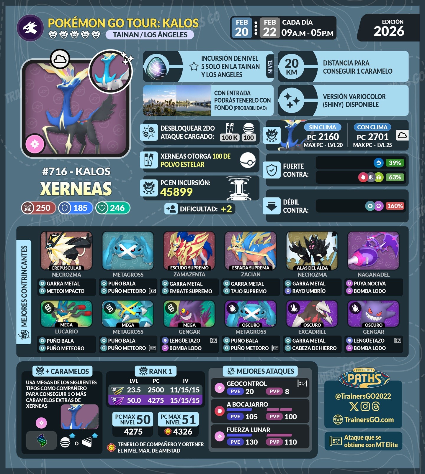 哲爾尼亞斯 (Xerneas) ✨ 天氣加成:CP 2591 – 2701 一般等級 (L20):CP 2073 – 2160