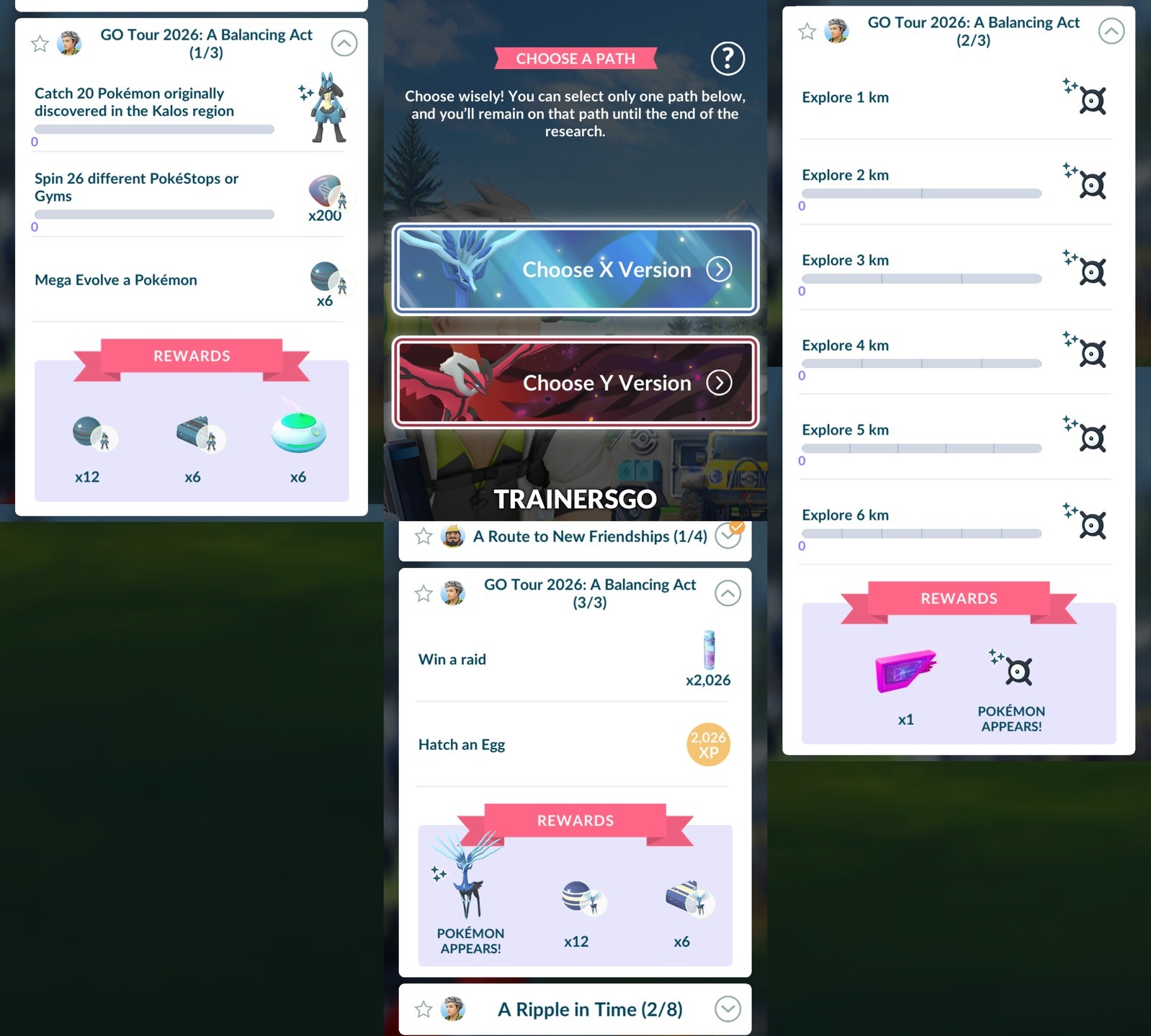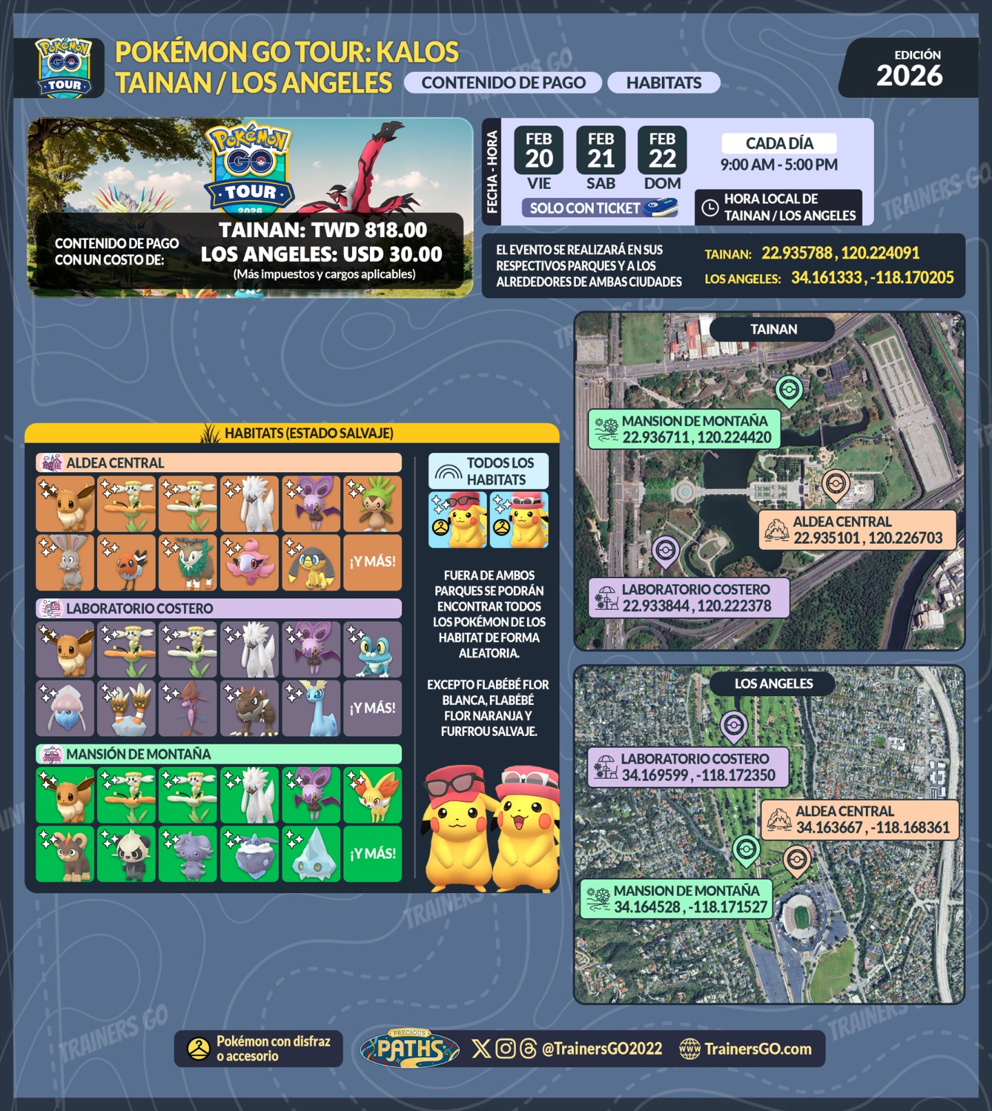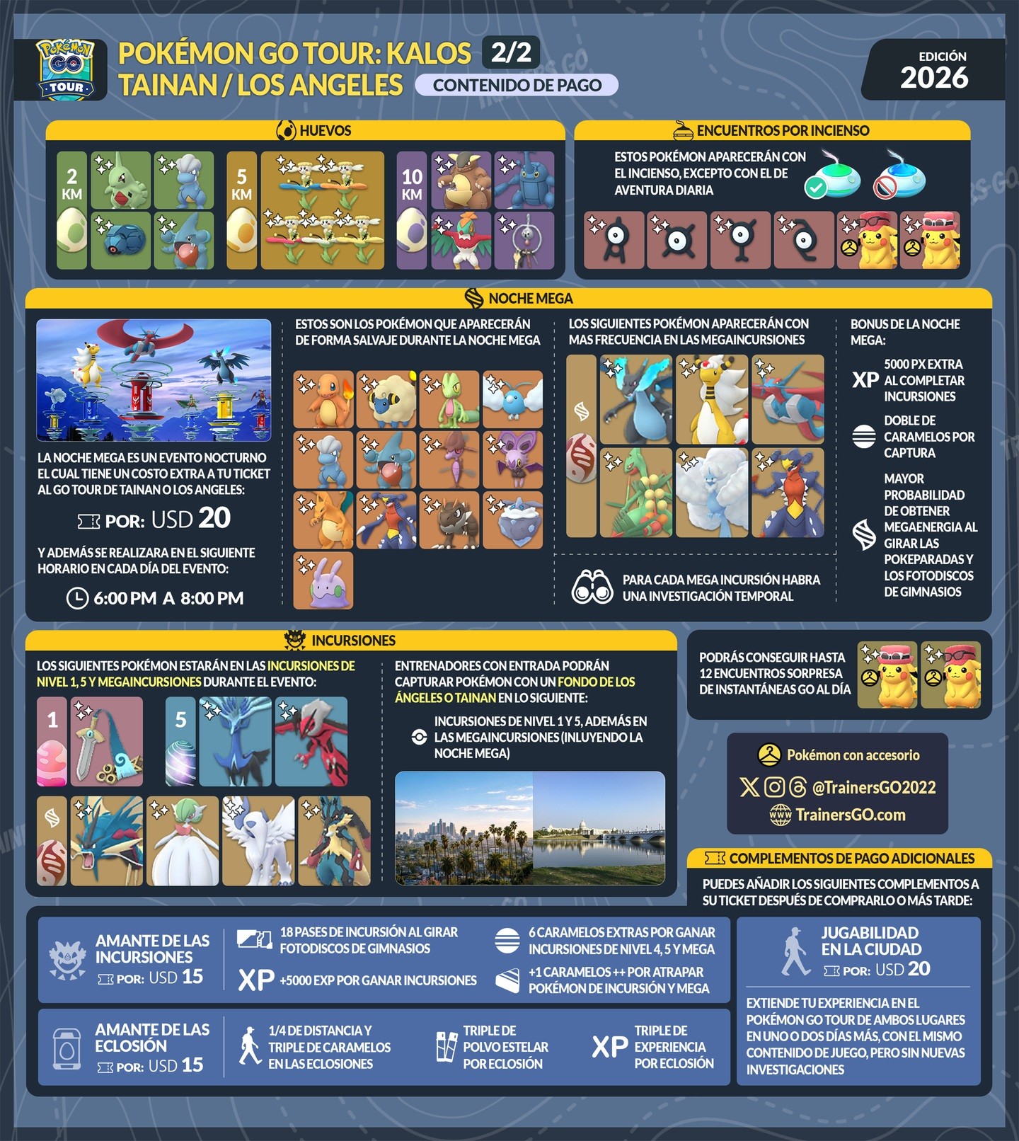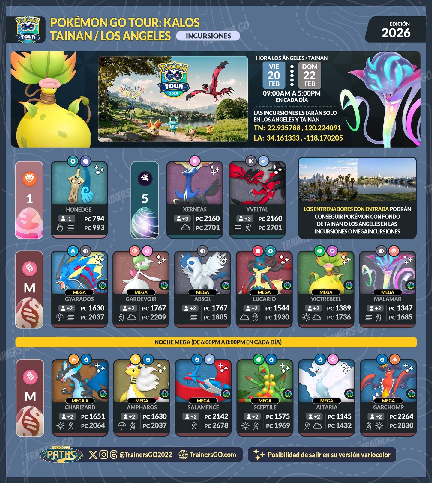 Todas las investigaciones de los eventos presenciales (solo con ticket) del Pokémon GO Tour: Kalos – Tainan y Los Ángeles.