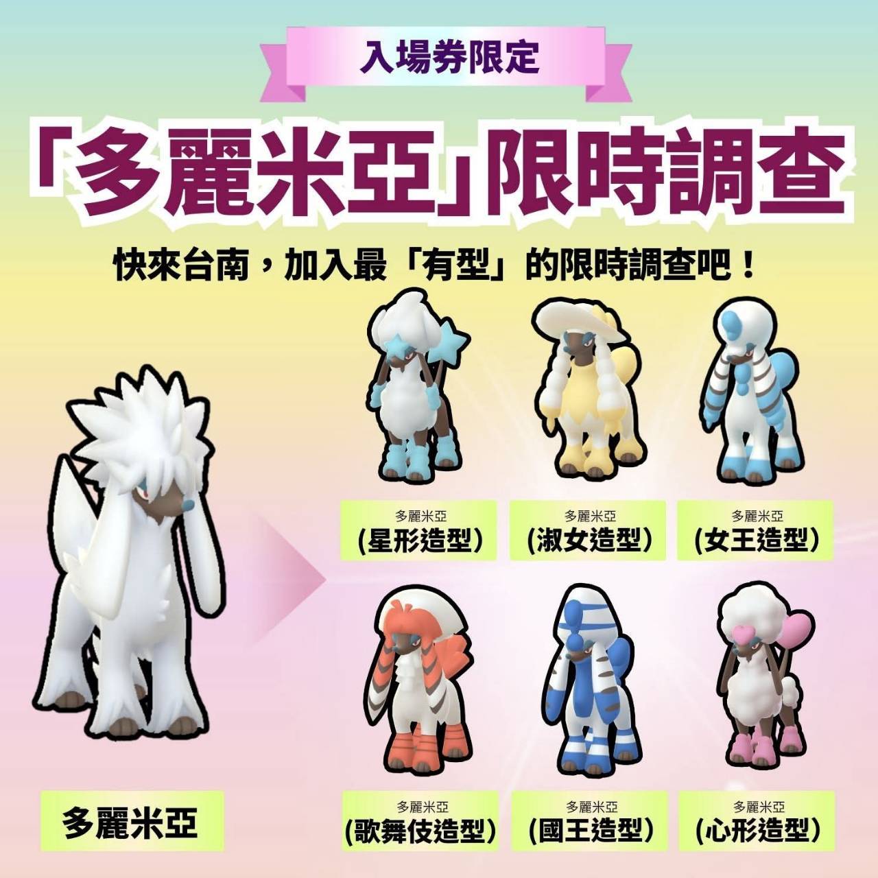 全城遊玩: 持票者在活動時間內,可於台南市區(不含主會場外)遭遇所有棲息地的寶可夢(部分特定花色花蓓蓓與多麗米亞除外)。
